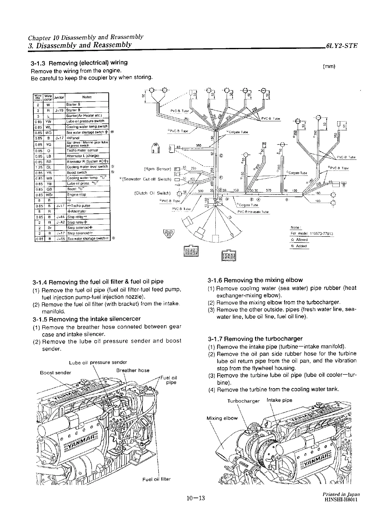 Yanmar 6LY2-STE - Removing Wiring; Removing the Fuel Oil Filter & Fuel Oil Pipe; Removing the Intake Silencercer; Removing the Mixing Elbow