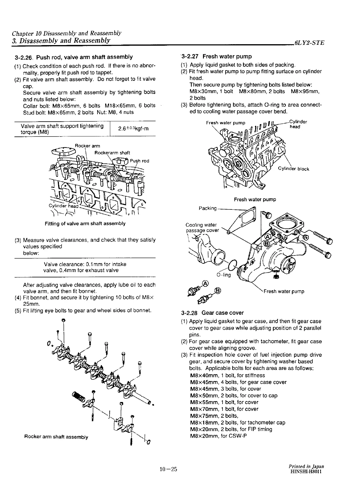 Yanmar 6LY2-STE - Push Rod, Valve Arm Shaft Assembly; Gear Case Cover