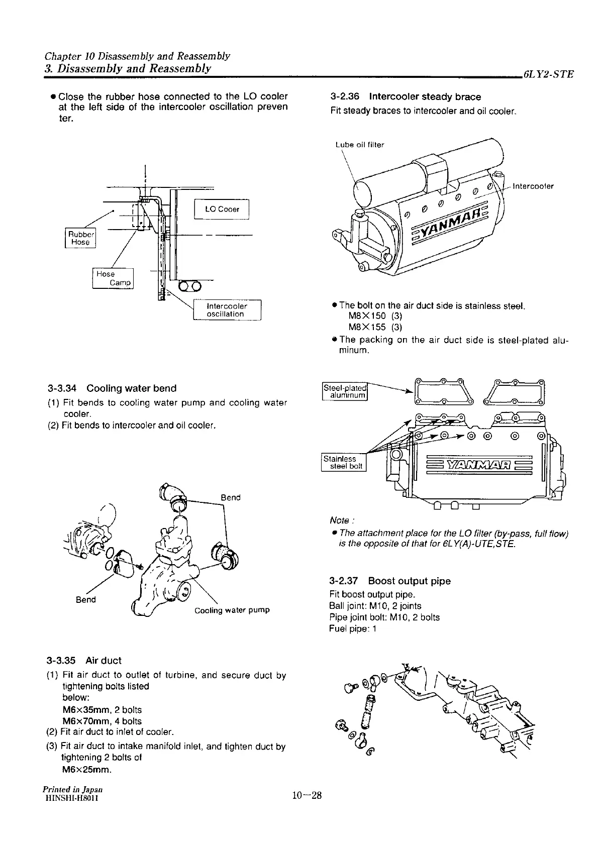 Yanmar 6LY2-STE - Cooling Water Bend; Air Duct; Intercooler Steady Brace; Boost Output Pipe