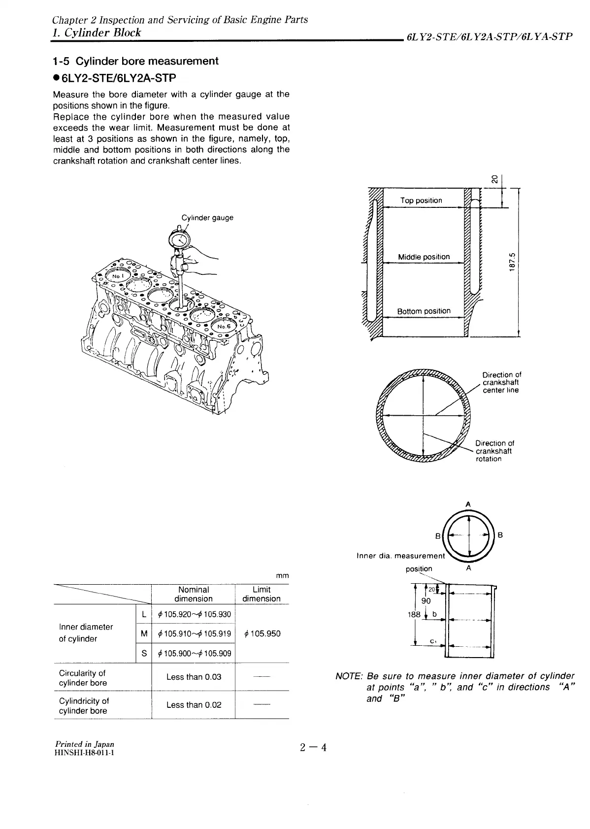 Yanmar 6LY2-STE - Cylinder Bore Measurement