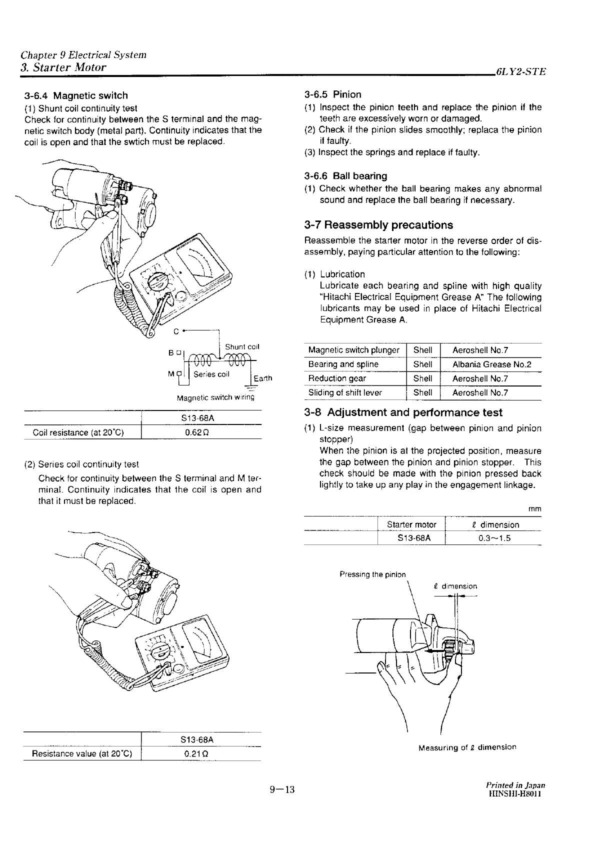Yanmar 6LY2A-STP - Reassembly Precautions; Magnetic Switch; Pinion; Ball Bearing