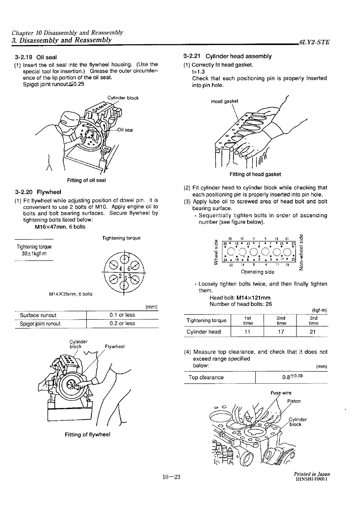 Yanmar 6LY2A-STP - Main parts spec.;tightening torque