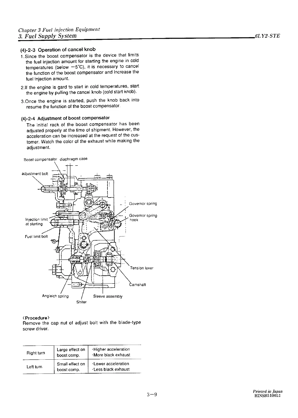 Yanmar 6LY2A-STP - Operation of Cancel Knob; Adjustment of Boost Compensator