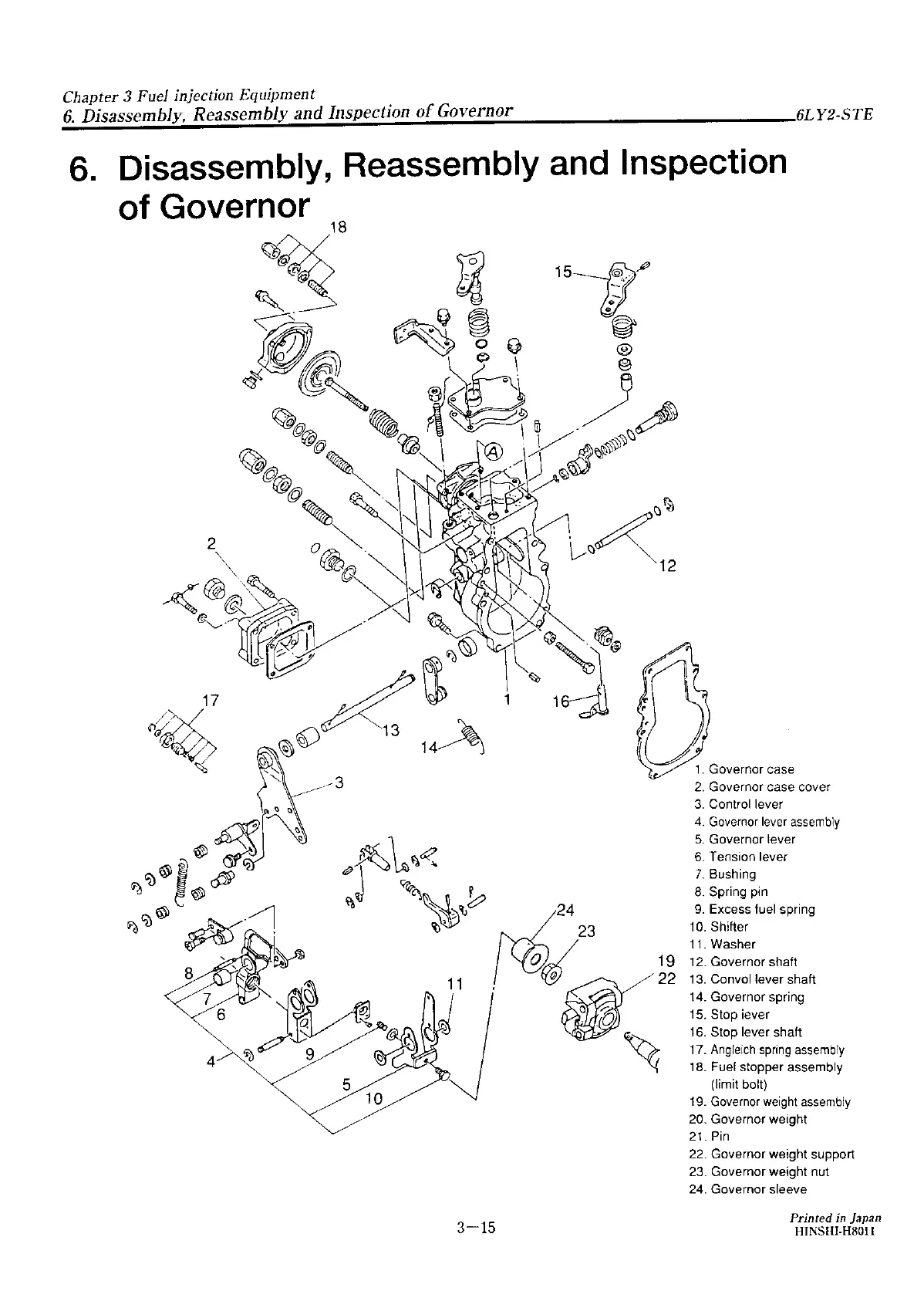 Yanmar 6LY2A-STP - Disassembly, Reassembly and Inspection of Governor