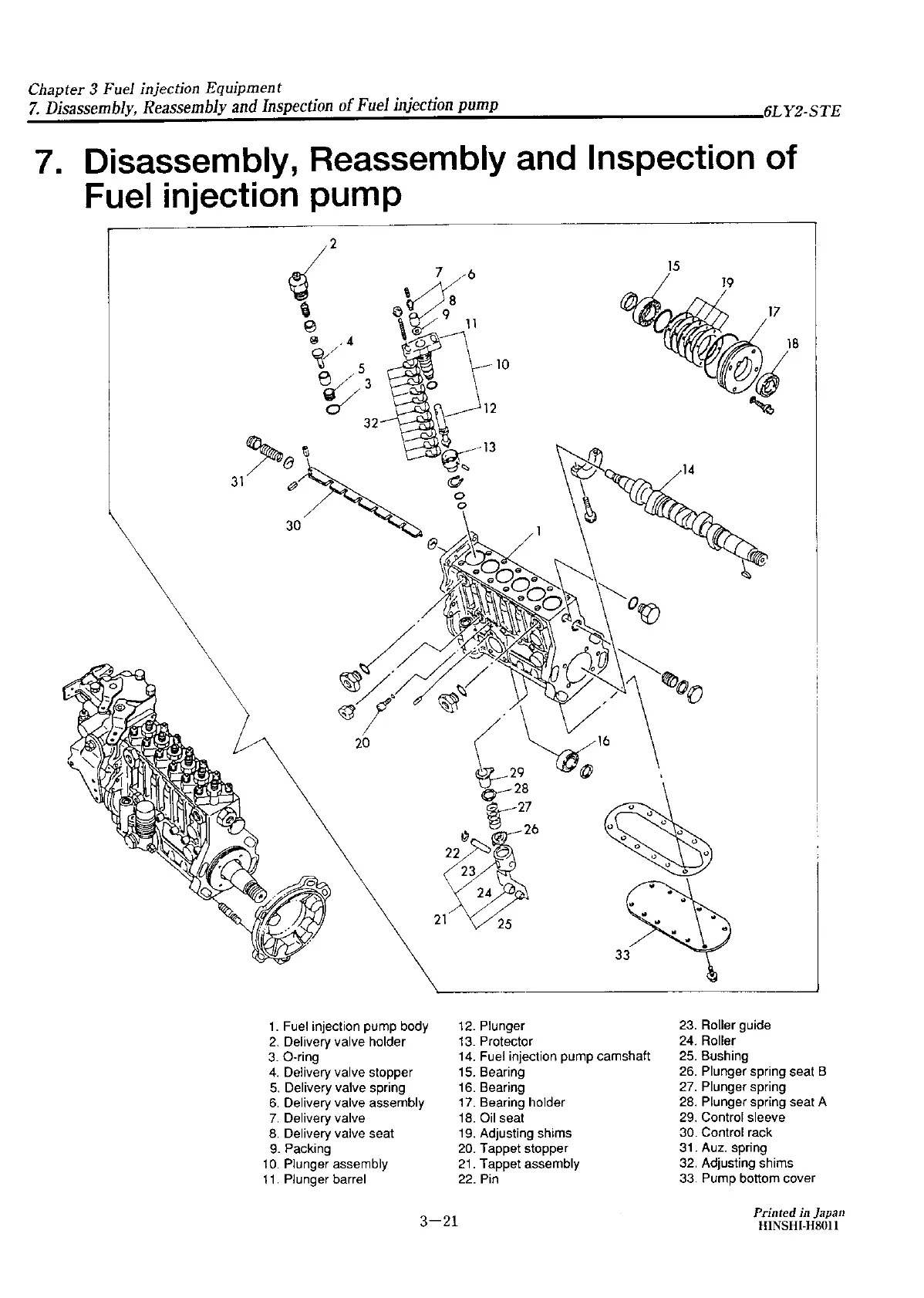 Yanmar 6LY2A-STP - Disassembly, Reassembly and Inspection of Fuel Injection Pump