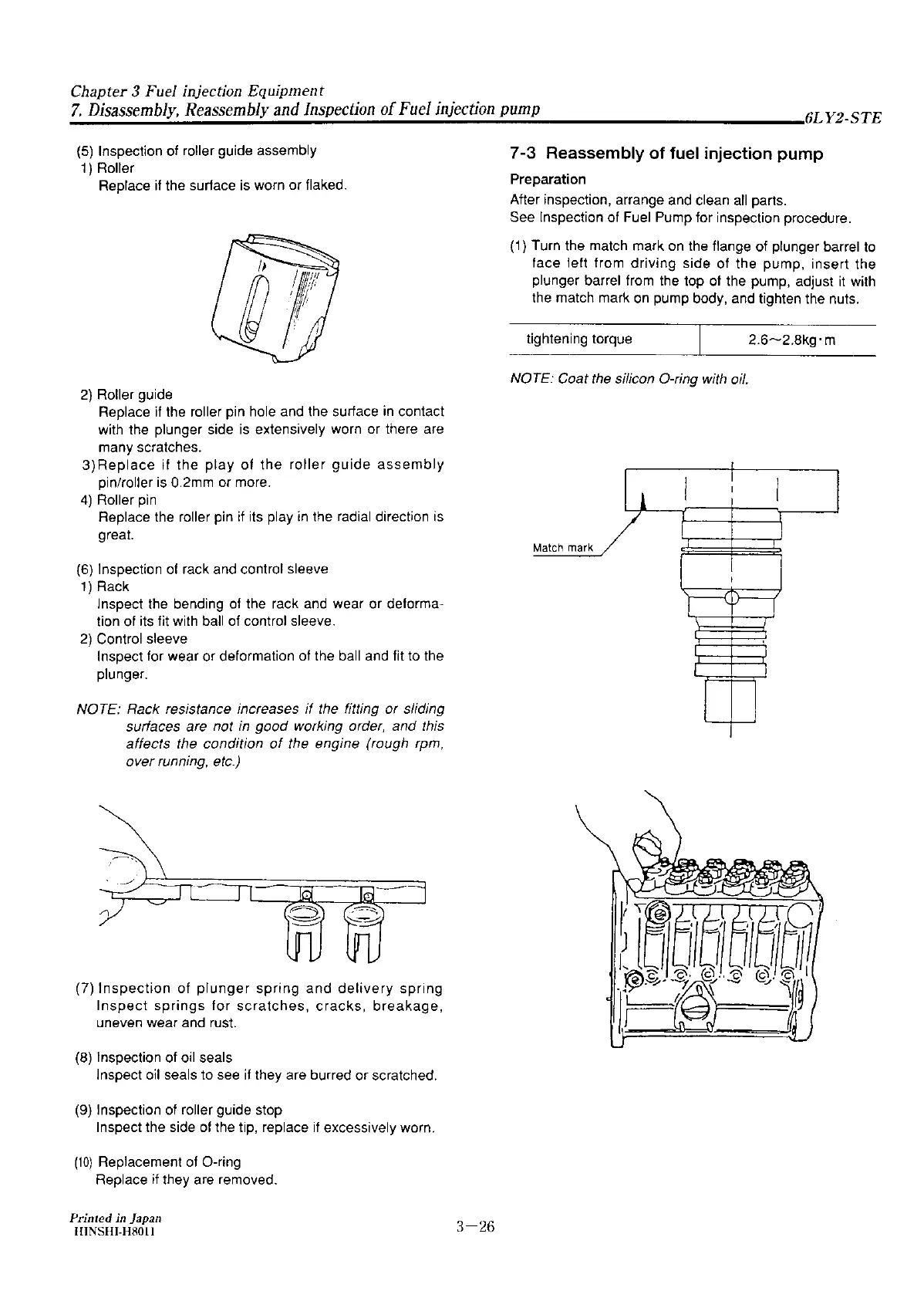 Yanmar 6LY2A-STP - Reassembly of Fuel Injection Pump