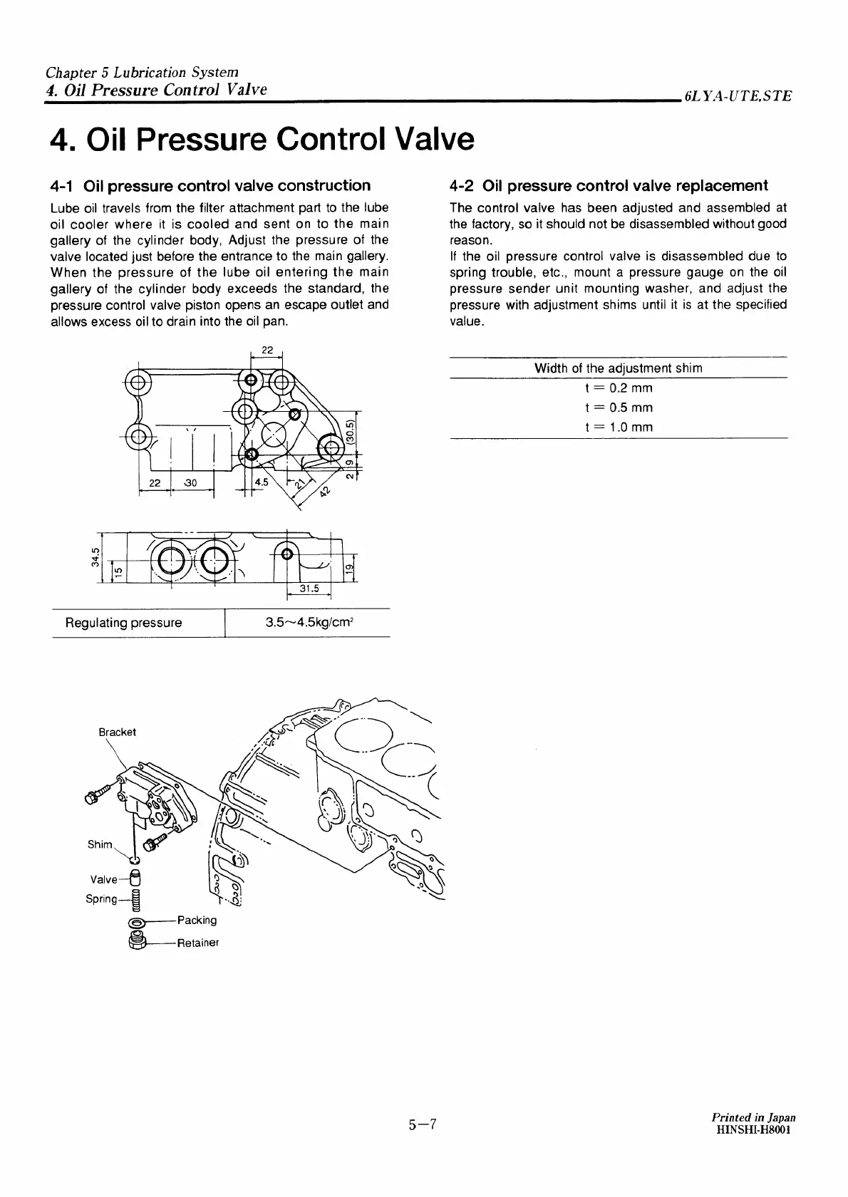 Yanmar 6LYA-STE - Oil Pressure Control Valve Construction; Oil Pressure Control Valve Replacement