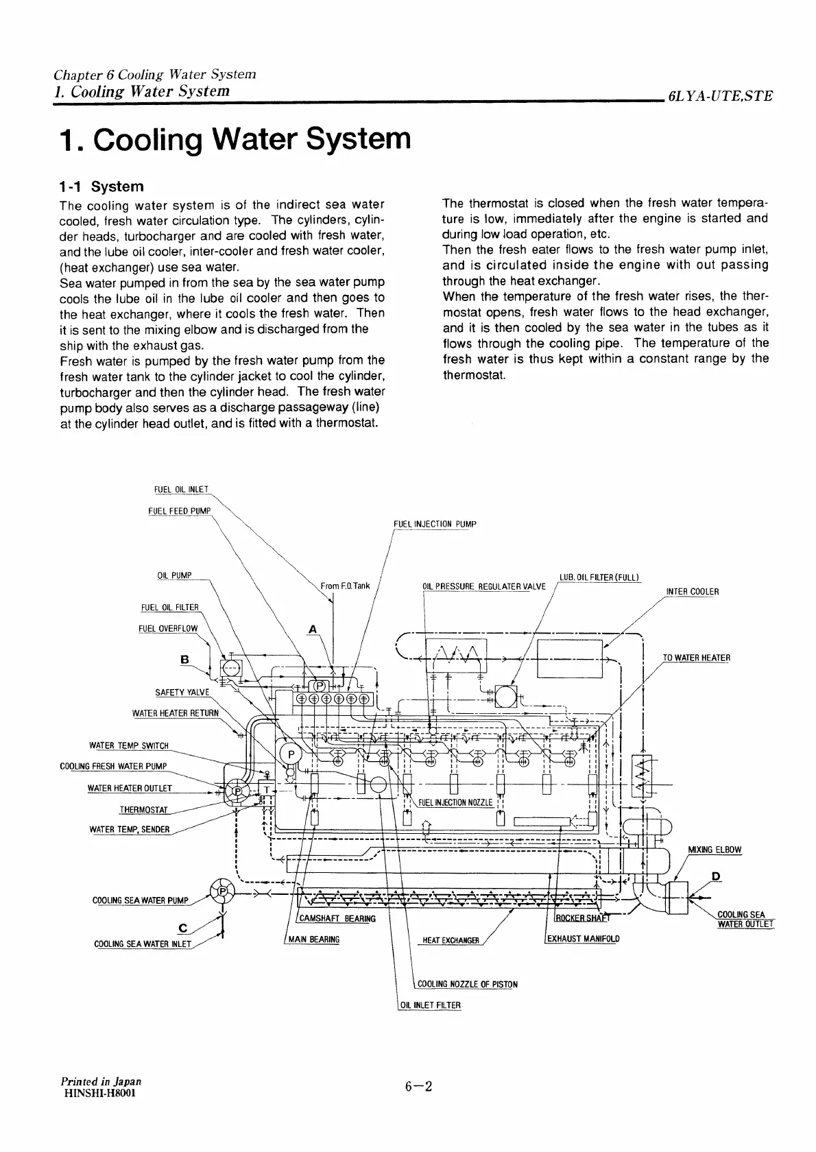 Yanmar 6LYA-STE - Cooling Water System Description and Diagram