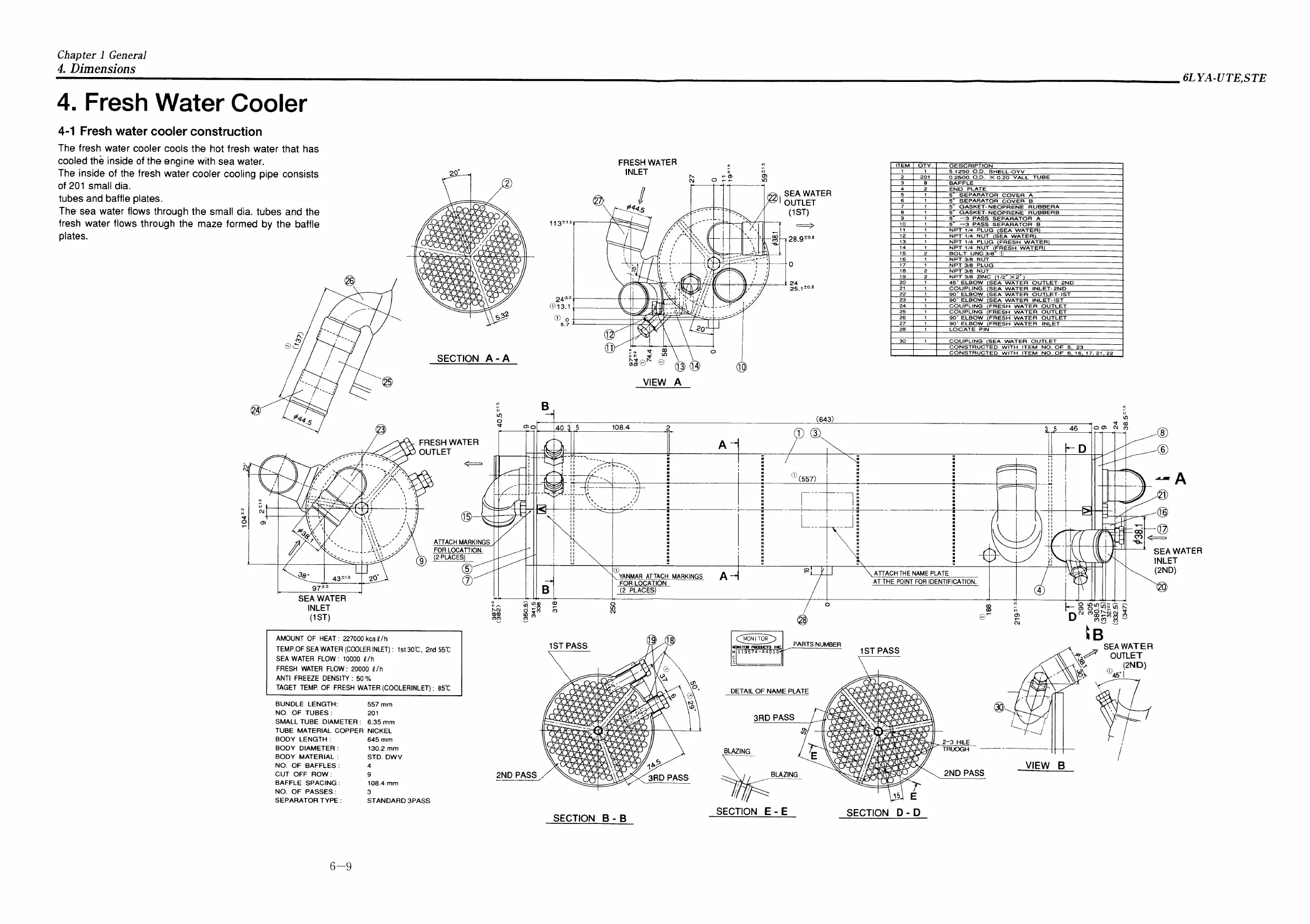 Yanmar 6LYA-STE - Fresh Water Cooler Construction; Fresh Water Cooler Schematic Diagram