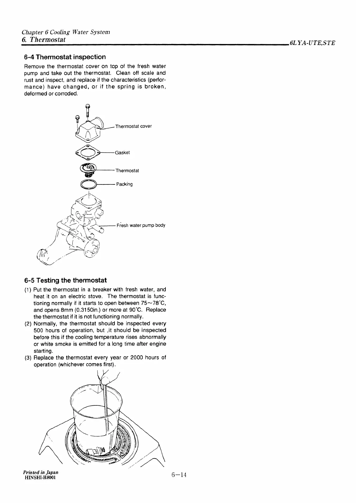 Yanmar 6LYA-STE - Thermostat Inspection; Thermostat Testing