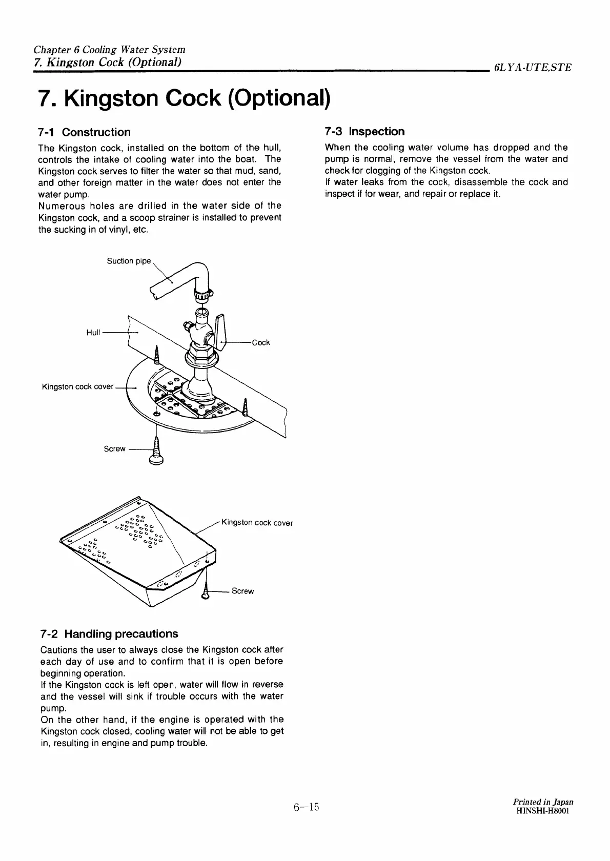 Yanmar 6LYA-STE - Kingston Cock Construction;Inspection; Kingston Cock Handling Precautions