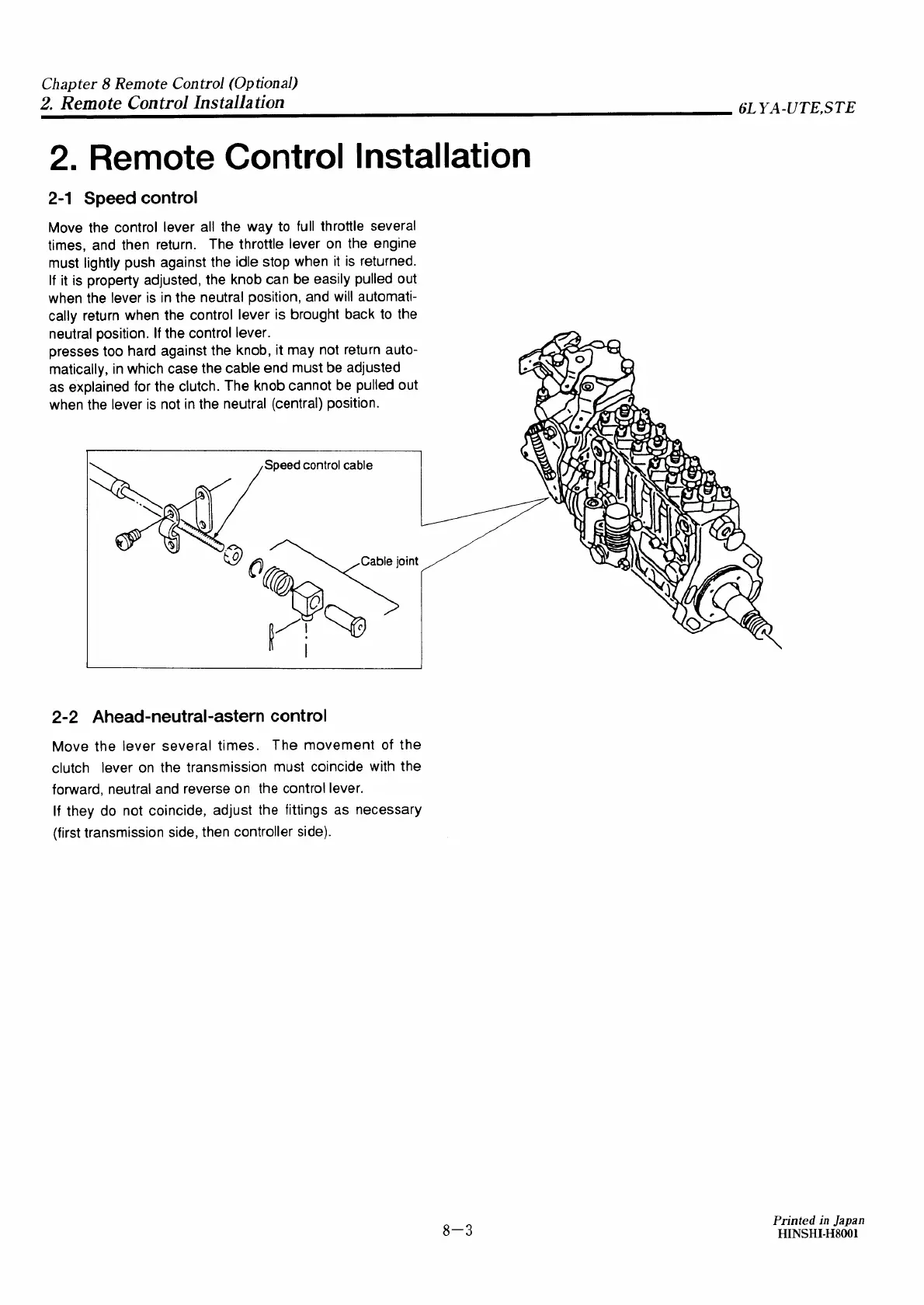 Yanmar 6LYA-STE - Remote Control Installation; Speed Control; Ahead-Neutral-Astern Control