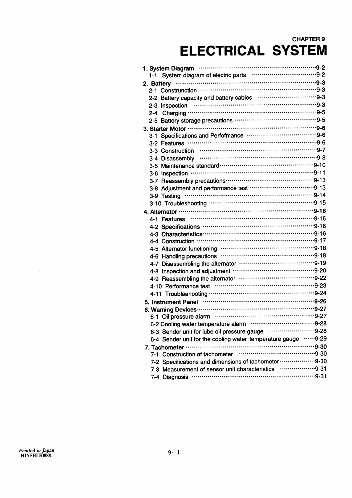 Yanmar 6LYA-STE - Electrical System: Table of Contents