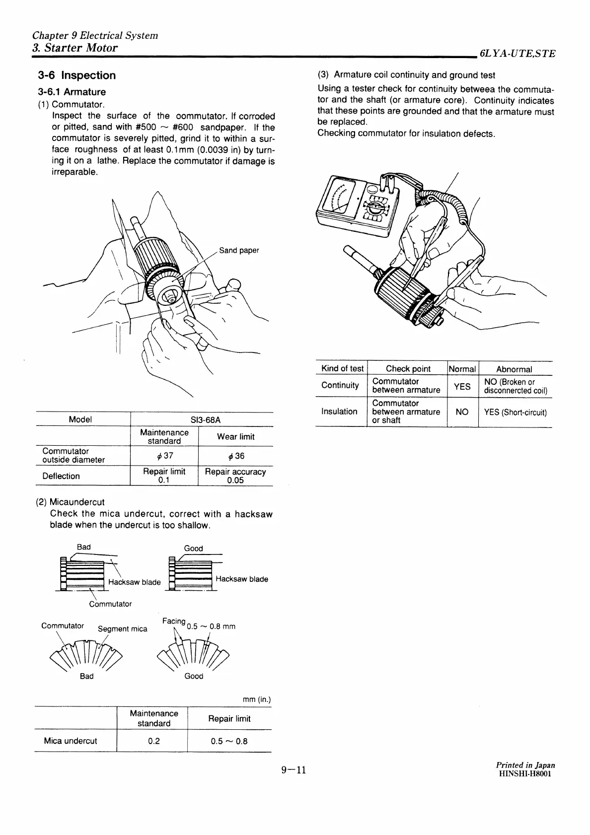 Yanmar 6LYA-STE - Starter Motor Armature Inspection