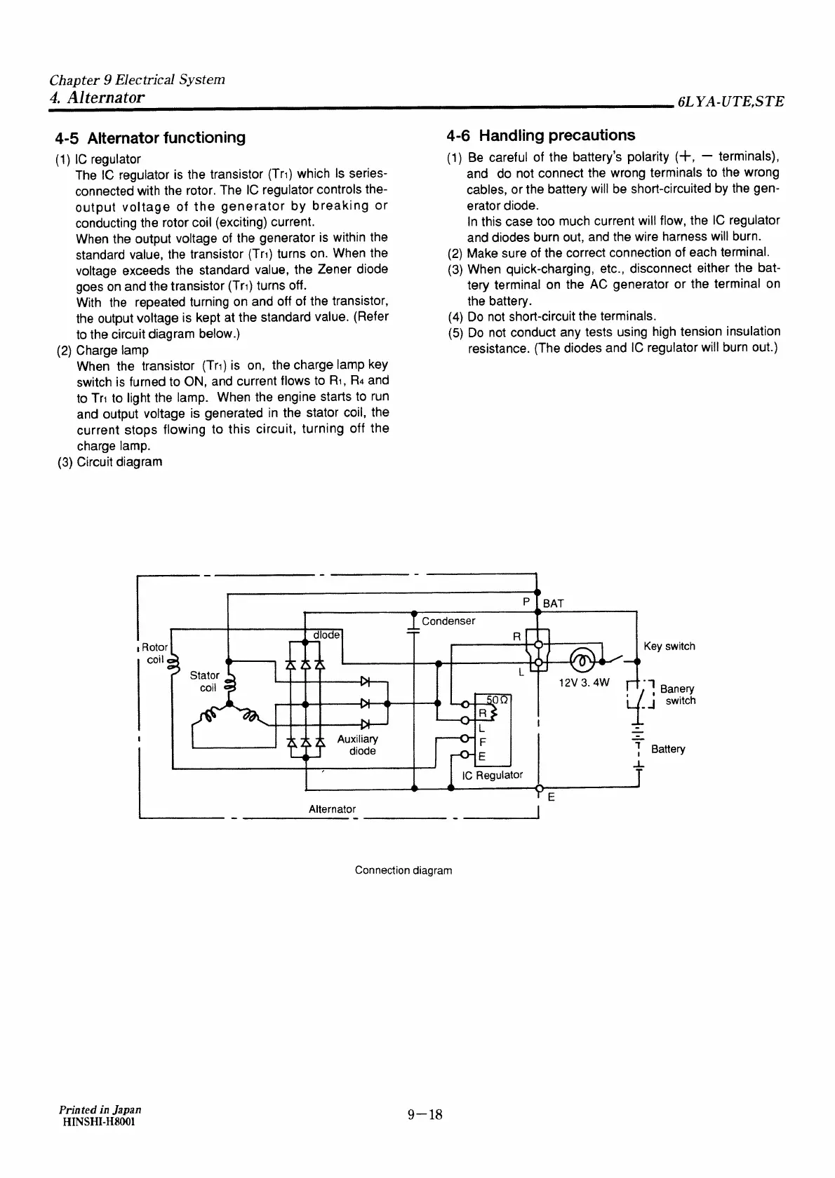Yanmar 6LYA-STE - Alternator Functioning; Alternator Handling Precautions