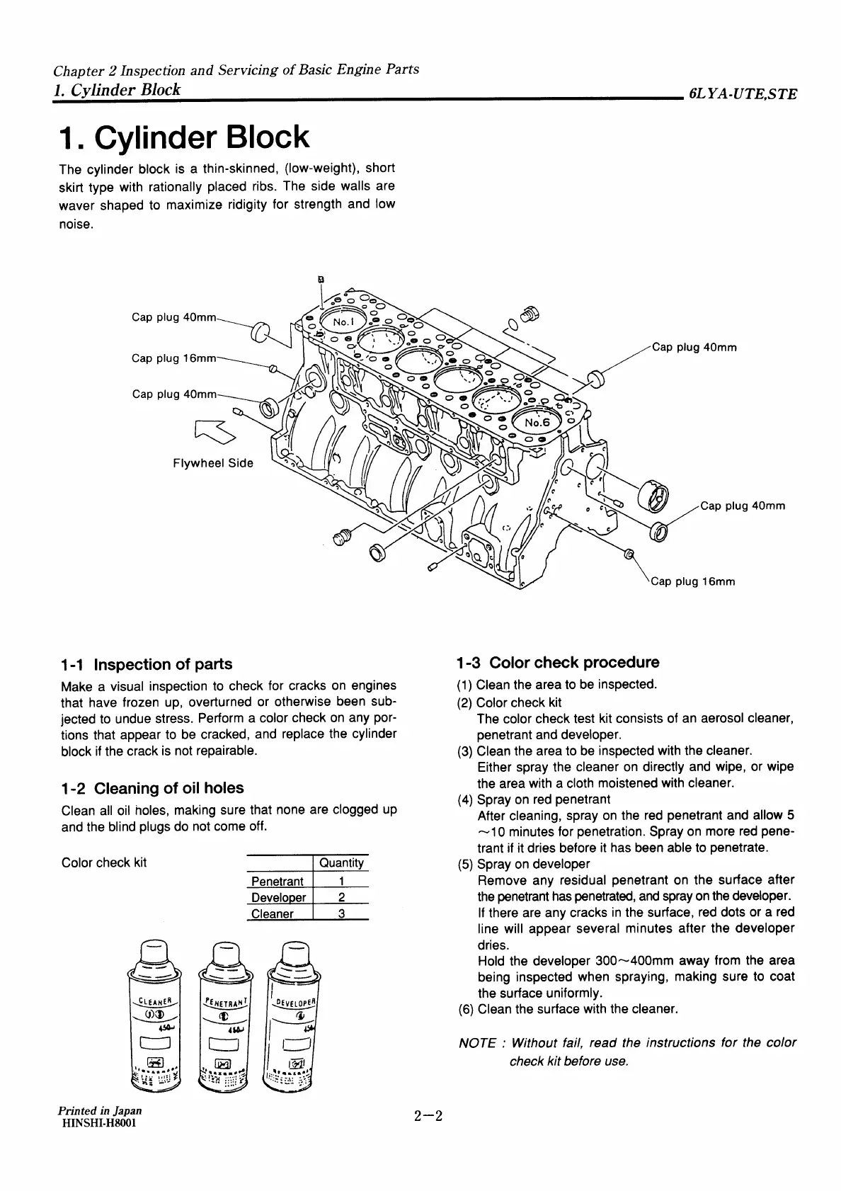 Yanmar 6LYA-STE - Cylinder Block; Cleaning of Oil Holes; Color Check Procedure