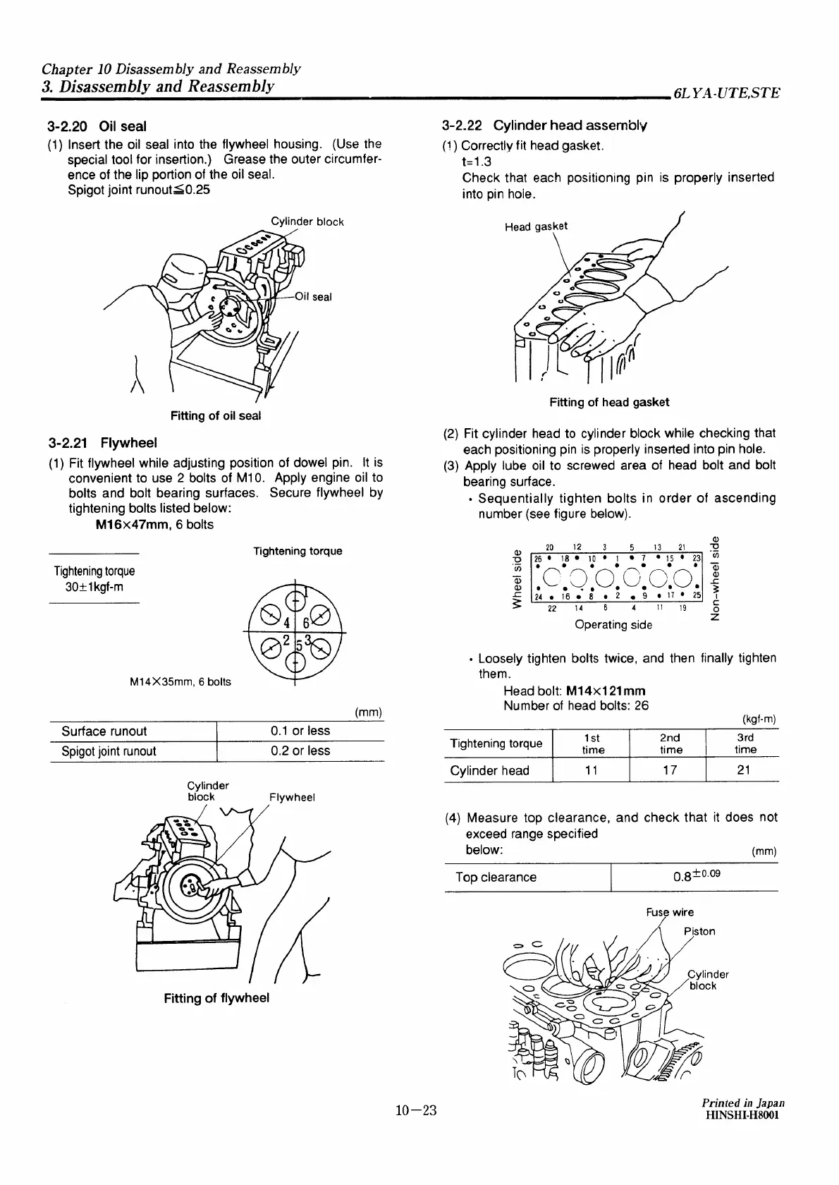 Yanmar 6LYA-STE - Fitting of Oil Seal; Fitting of Flywheel; Cylinder Head Assembly; Fitting of Head Gasket