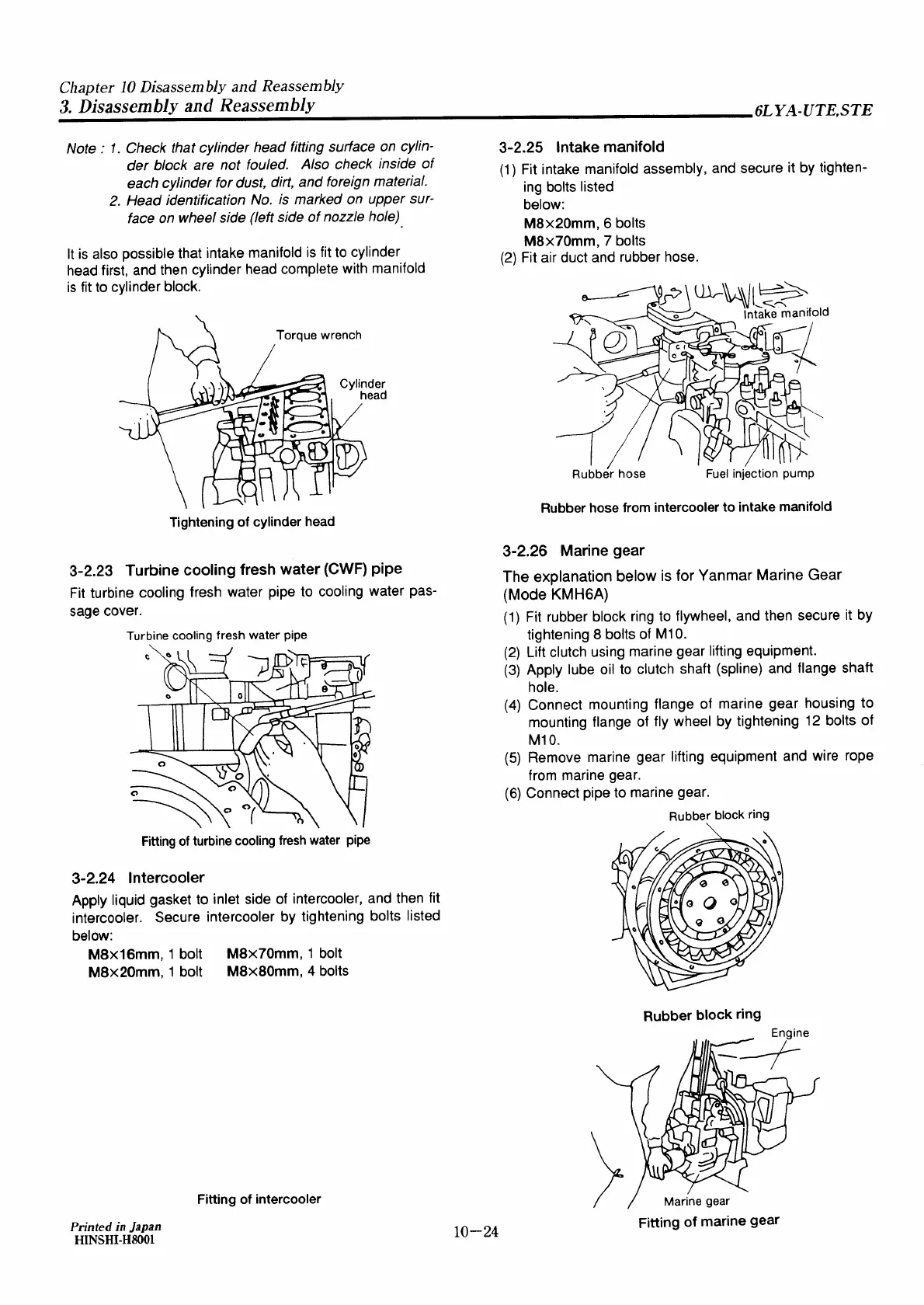 Yanmar 6LYA-STE - Fitting of Turbine Cooling Fresh Water (CWF) Pipe; Fitting of Intercooler; Intake Manifold Assembly; Fitting of Marine Gear