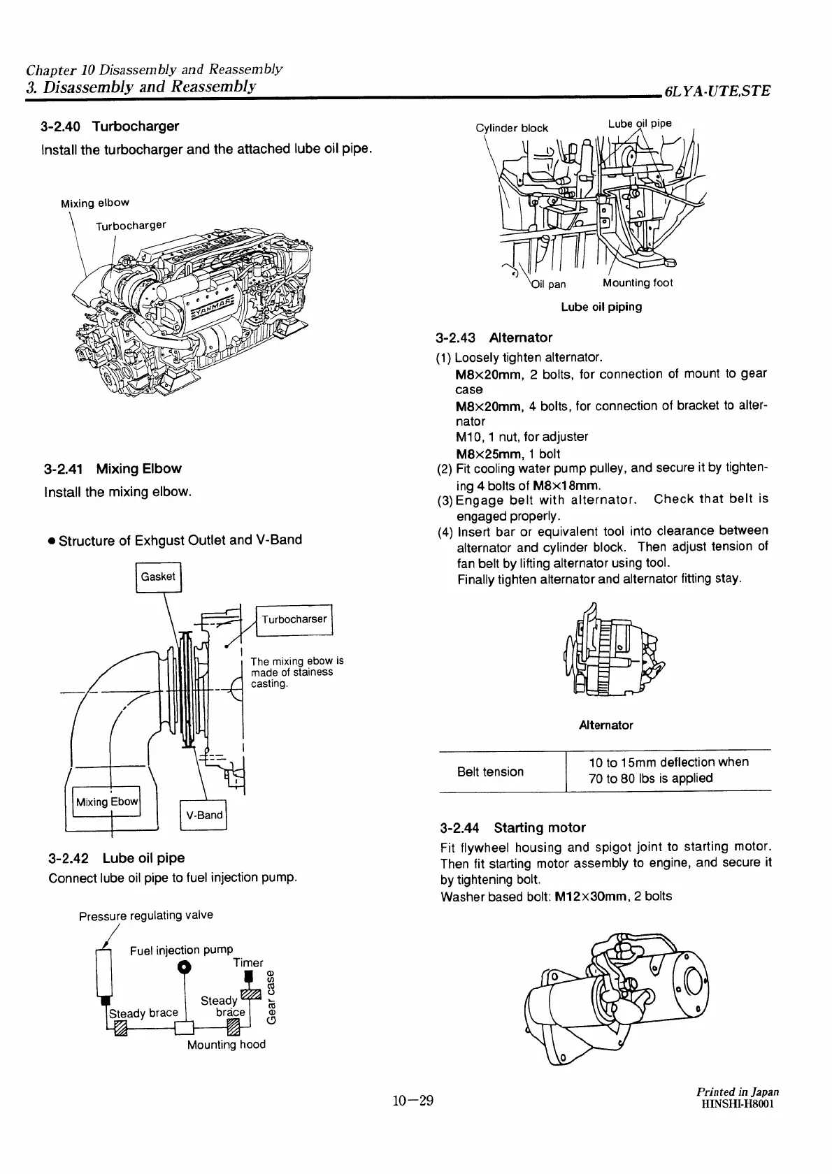 Yanmar 6LYA-STE - Installation of Turbocharger; Mixing Elbow;Lube Oil Pipe; Alternator; Starting Motor