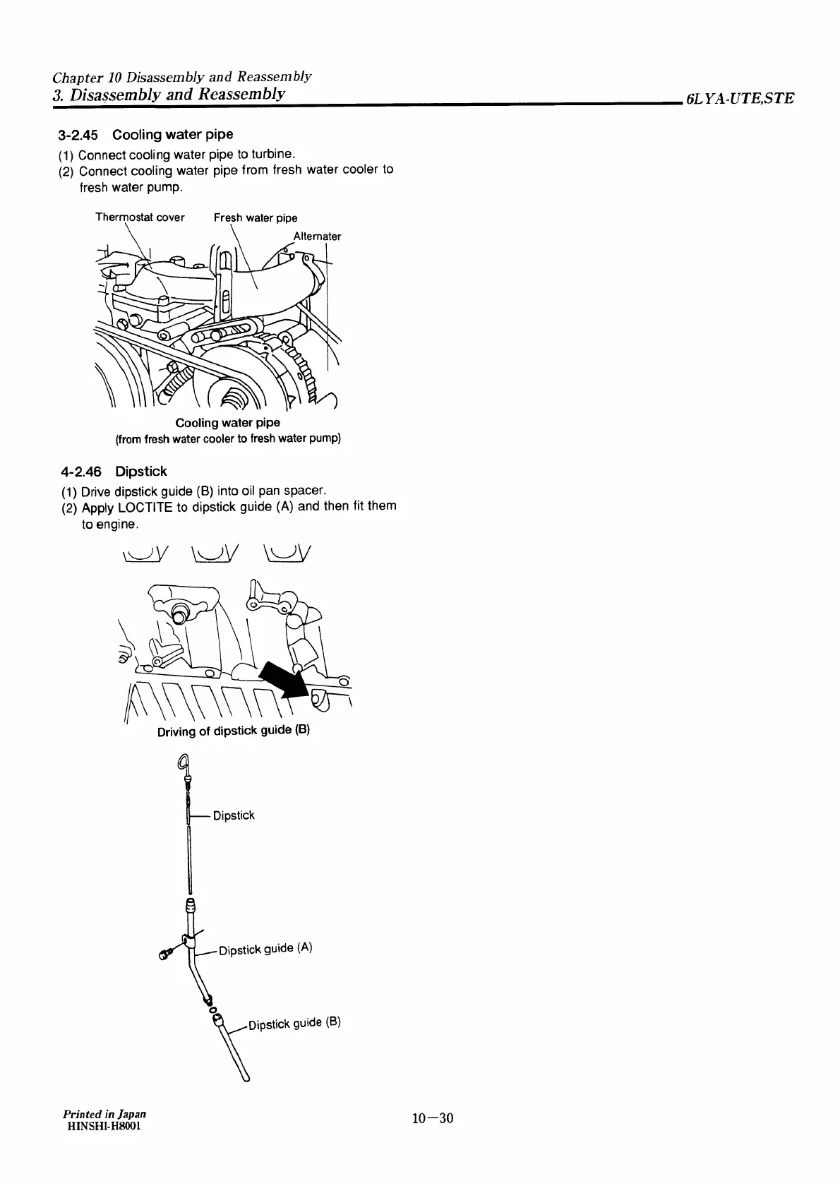 Yanmar 6LYA-STE - Fitting of Cooler Water Pipe; Driving of Dipstick Guide