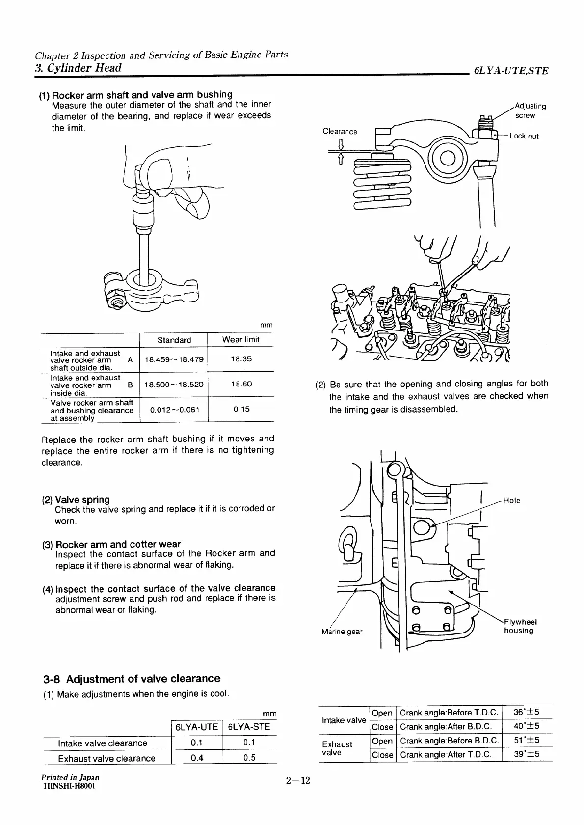 Yanmar 6LYA-STE - Adjustment of Valve Clearance
