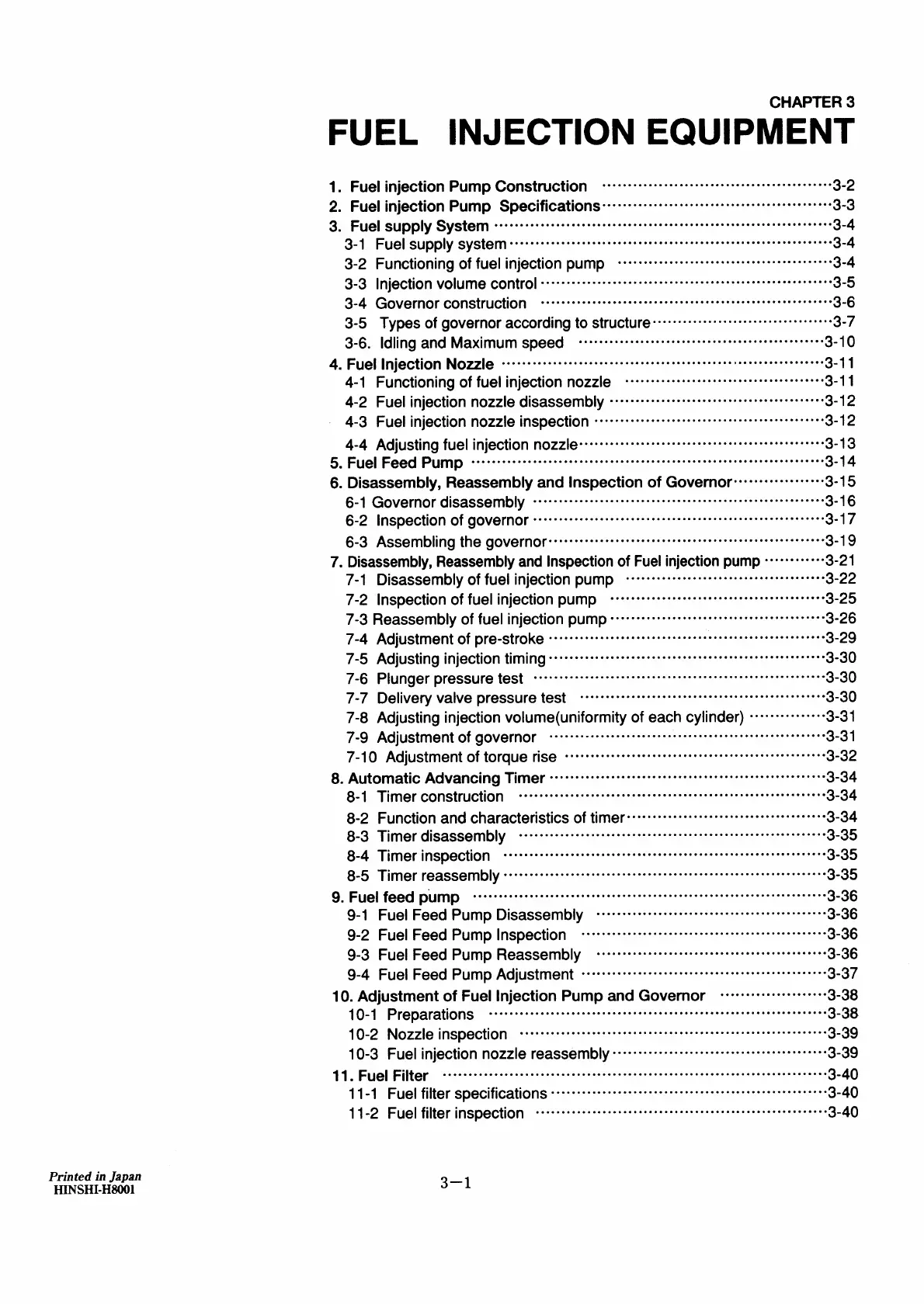 Yanmar 6LYA-STE - Fuel Injection Equipment. Table of Contents