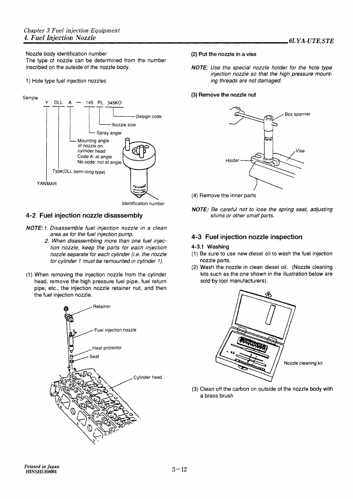 Yanmar 6LYA-STE - Fuel Injection Nozzle Disassembly; Fuel Injection Nozzle Inspection