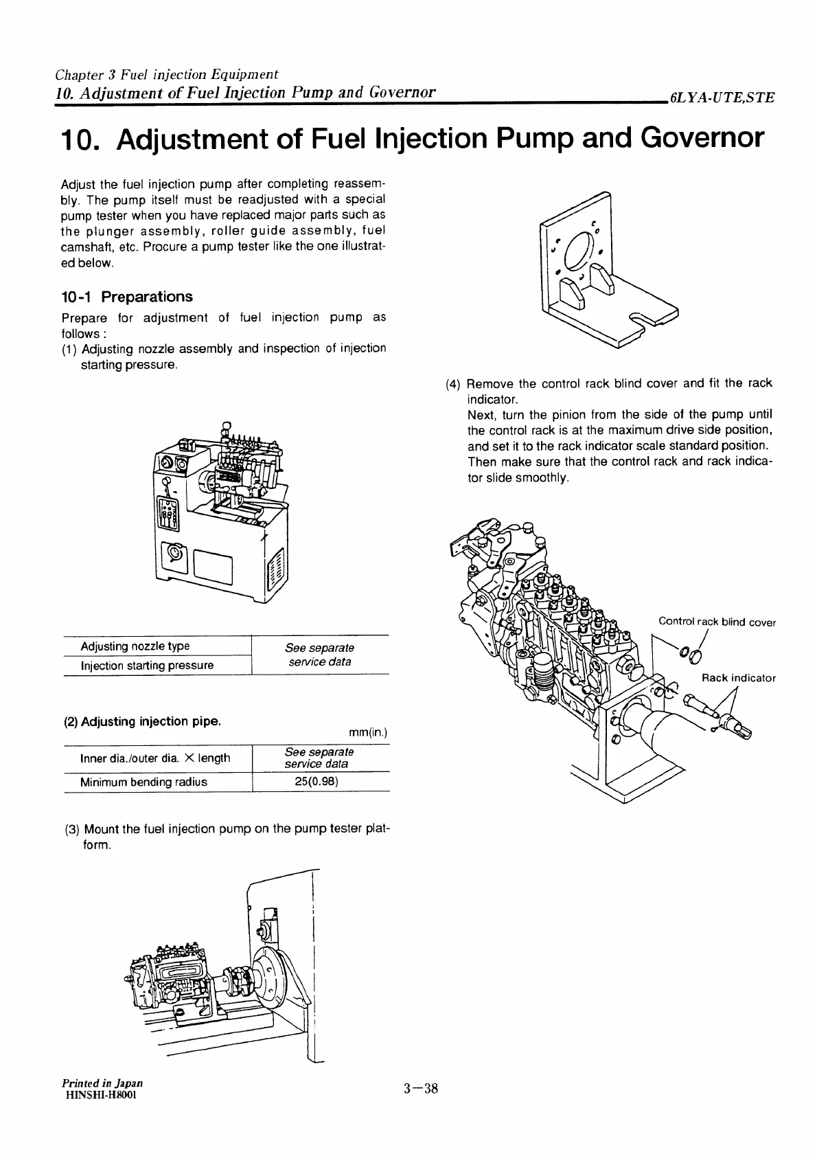 Yanmar 6LYA-STE - Adjustment of Fuel Injection Pump and Governor; Adjusting Injection Pipe