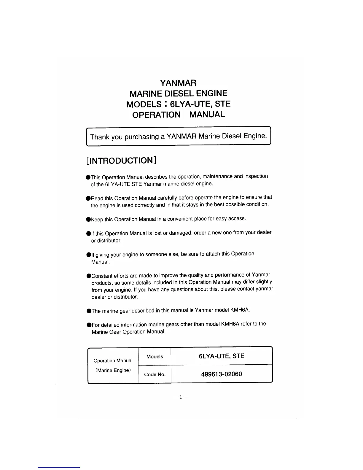 Yanmar 6LYA-UTE - Introduction