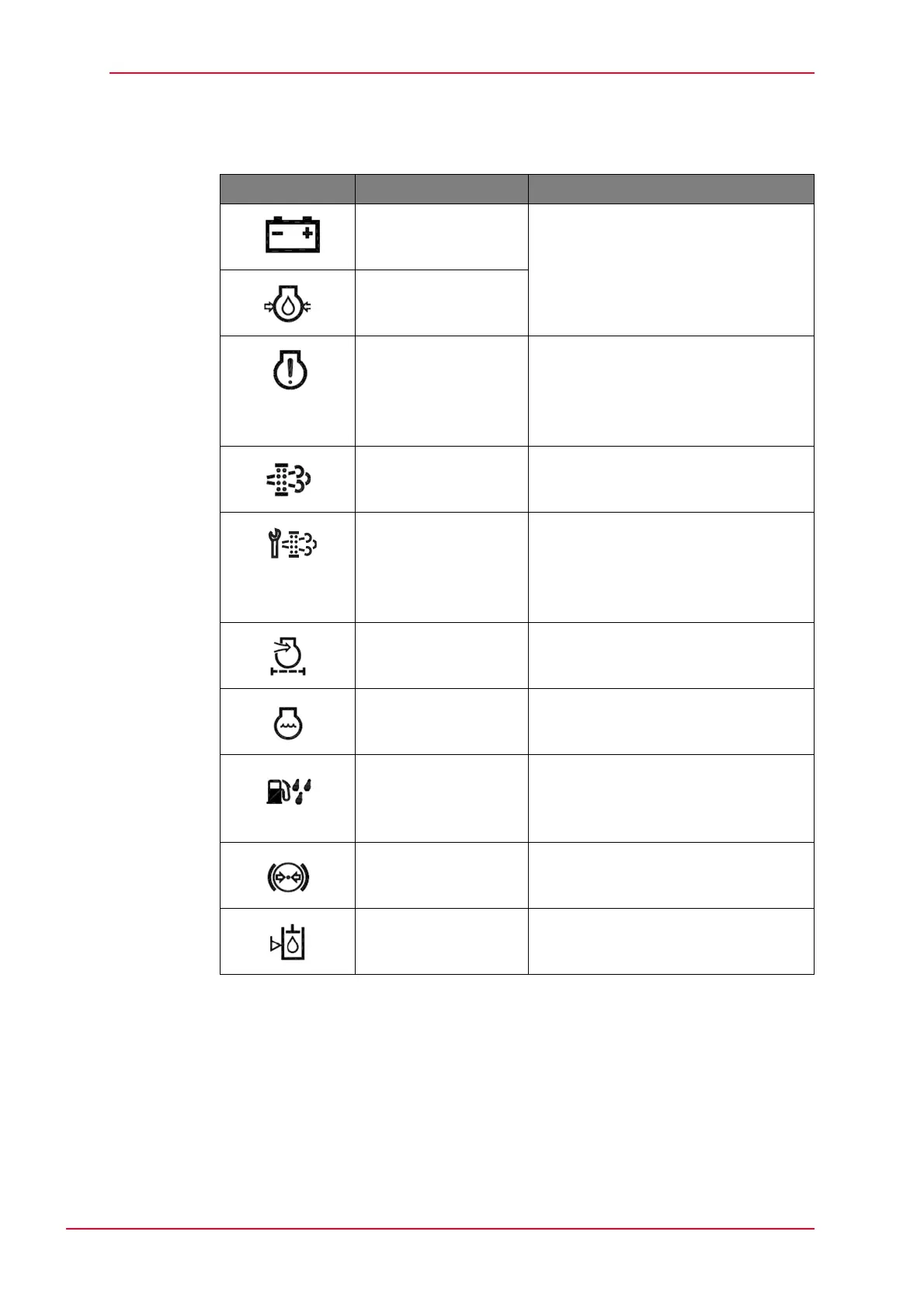 Symbol Name Required actions when lit up