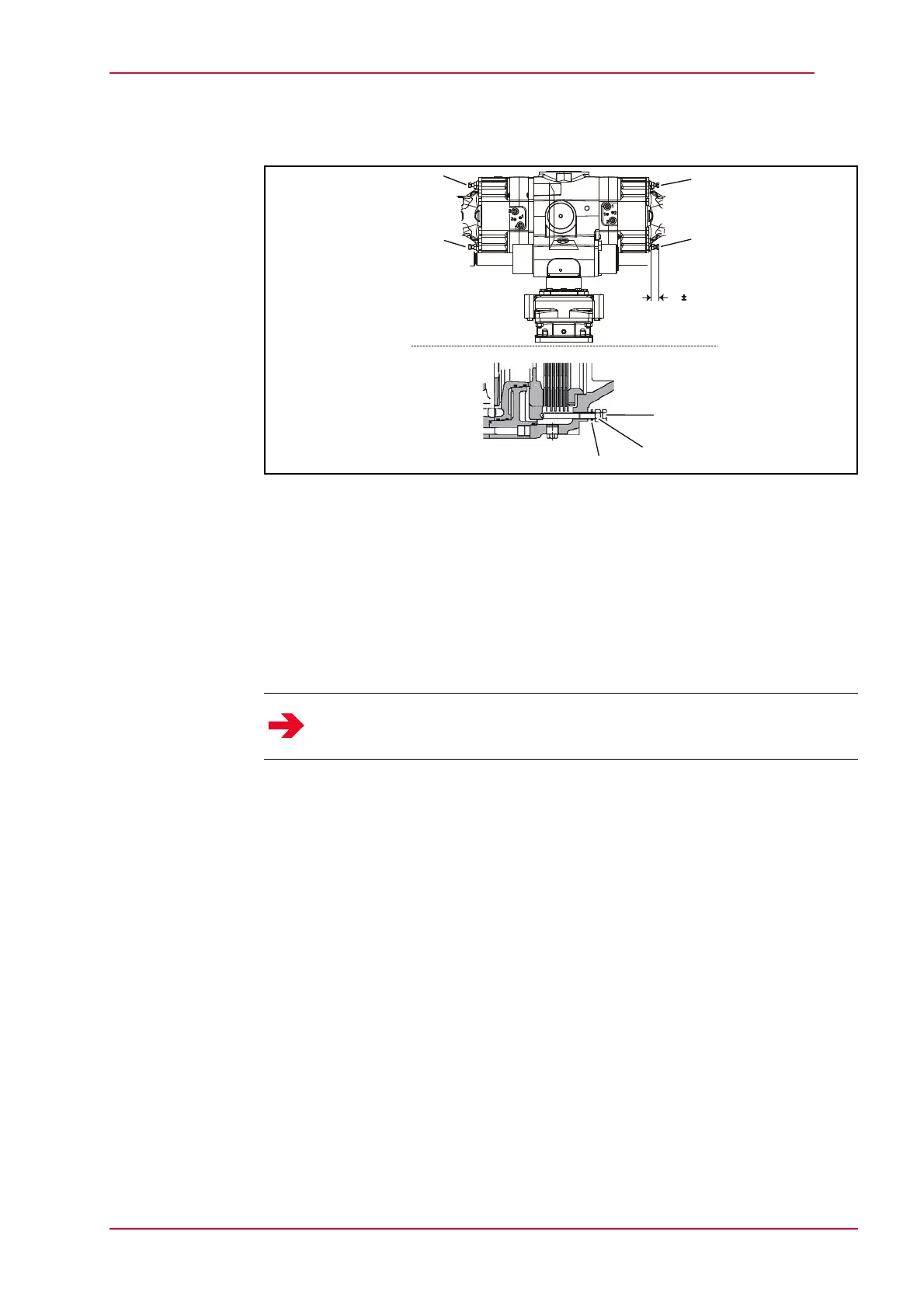 Tighten the screws (1) until the adjustment dimension is 31 ± 0.5 mm.