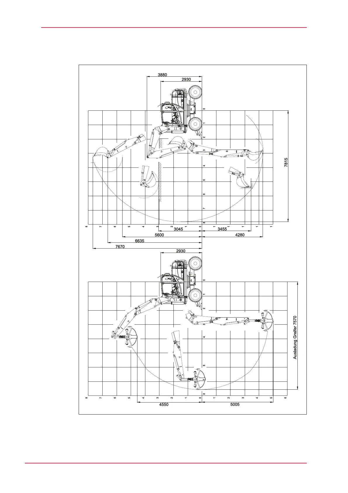 Fig. 9-2 Digging envelope - 2200 mm