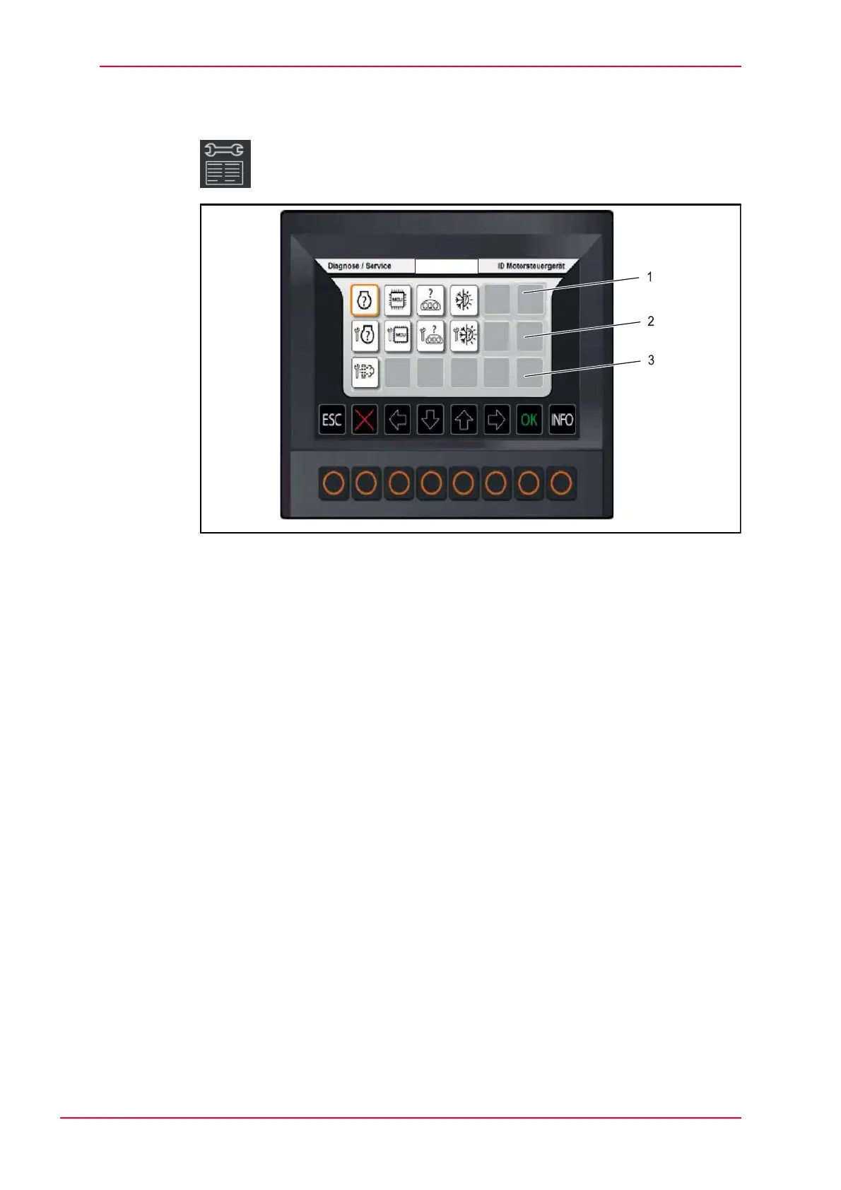 Select OK in the ‘service display’ (2) submenu to activate the corresponding