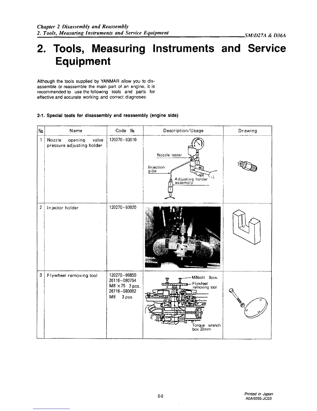 Yanmar D27 - Tools, Measuring Instruments and Service Equipment