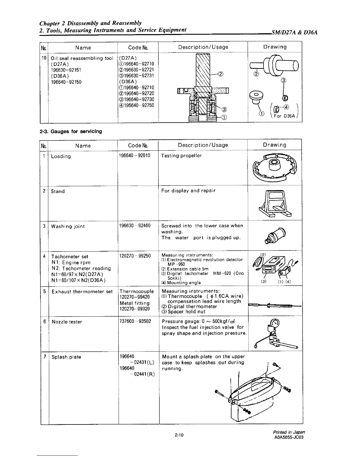 Yanmar D27 - Gauges for Servicing
