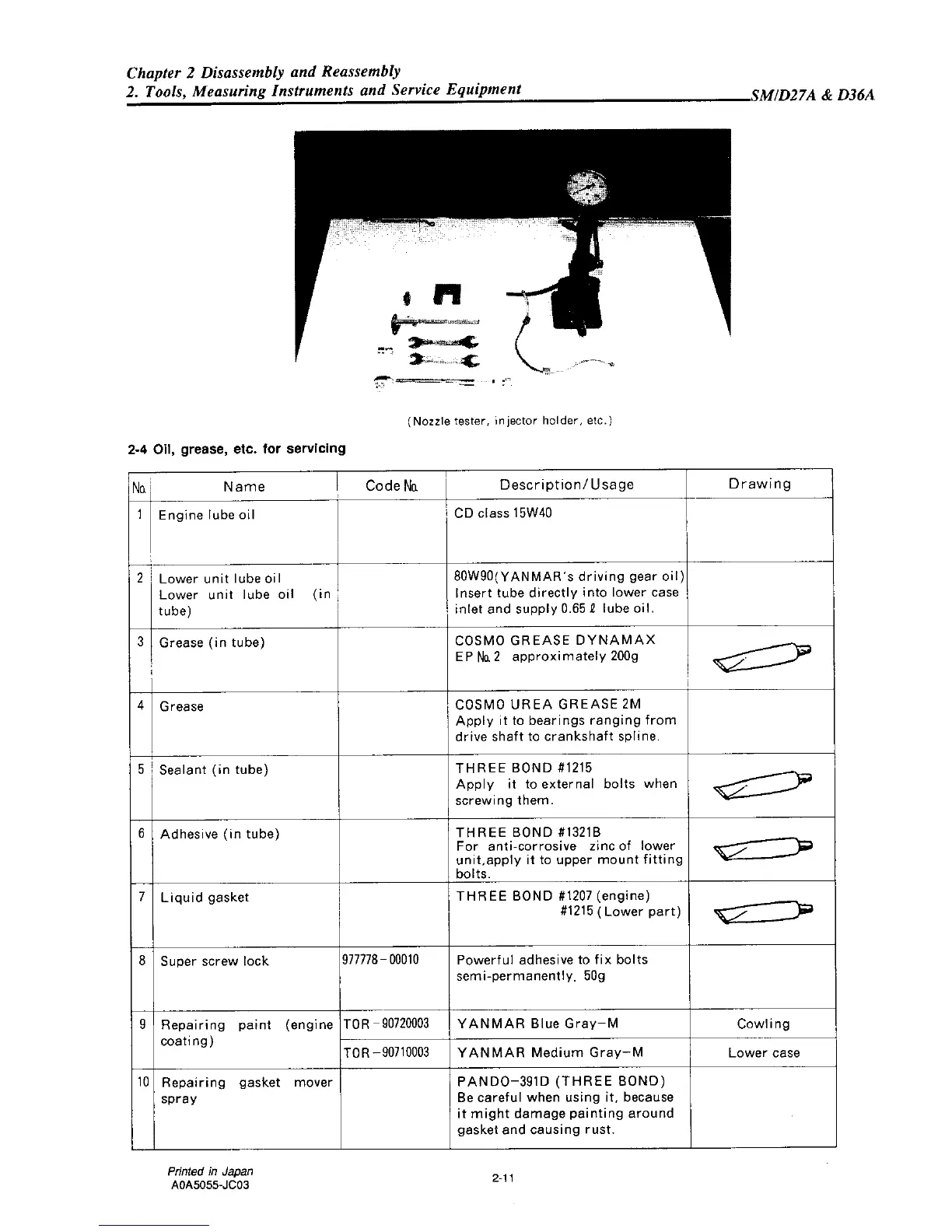 Yanmar D27 - Oil, Grease, Etc. for Servicing