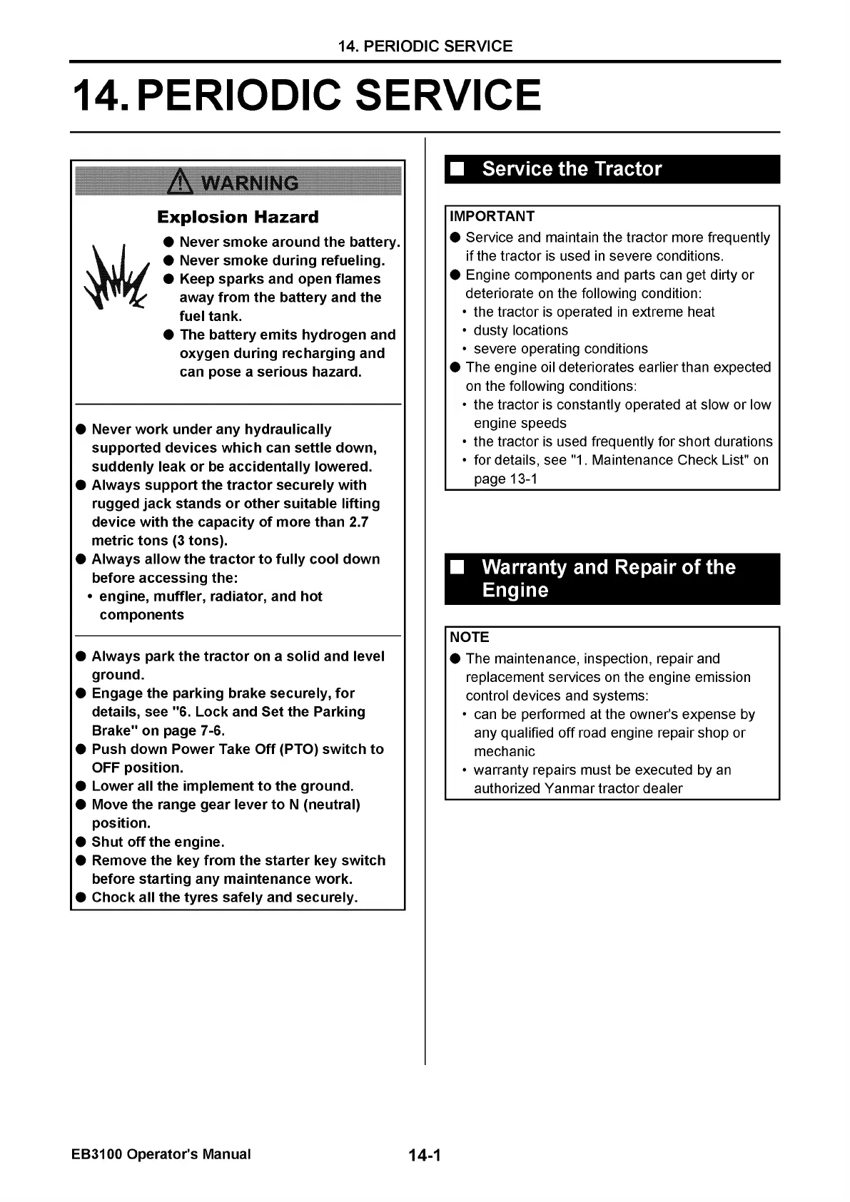 Yanmar EB3100 - 3-POINT HITCH AND DRAWBAR; 3-Point Hitch Operation