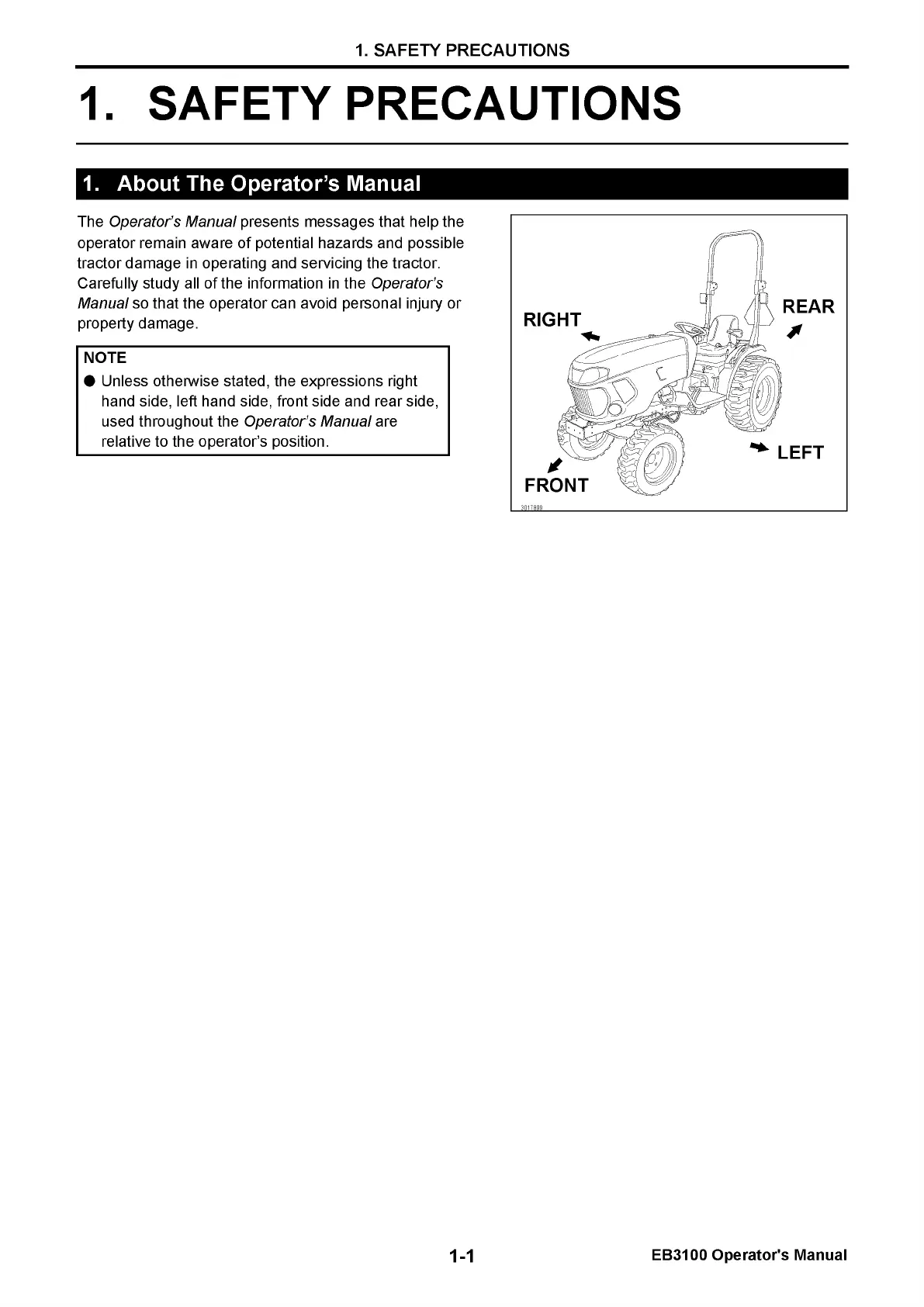 Yanmar EB3100 - Precautions Before Operating The Tractor