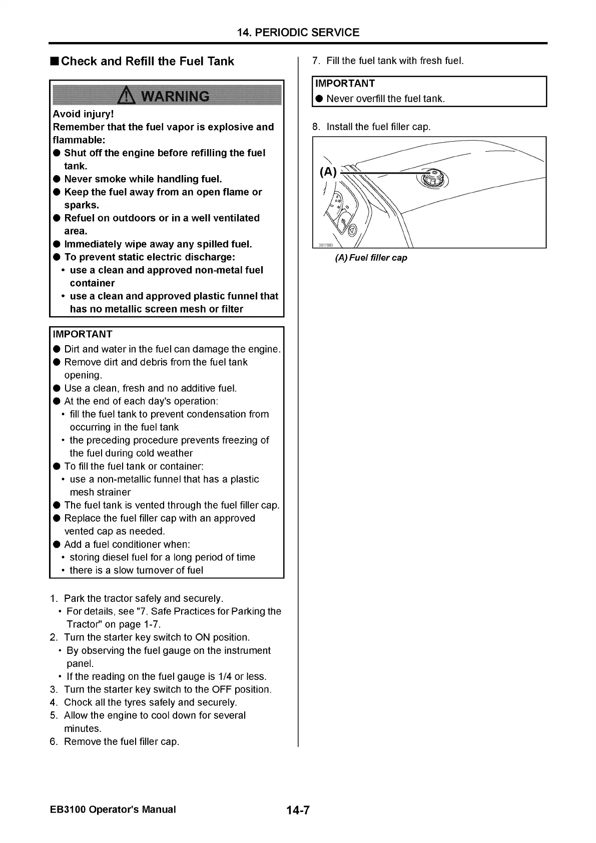 Yanmar EB3100 - HYDRAULIC SYSTEM; 3-Point Hitch Control System; Operate 3-Point Hitch Control Lever; Use Position Stop Knob