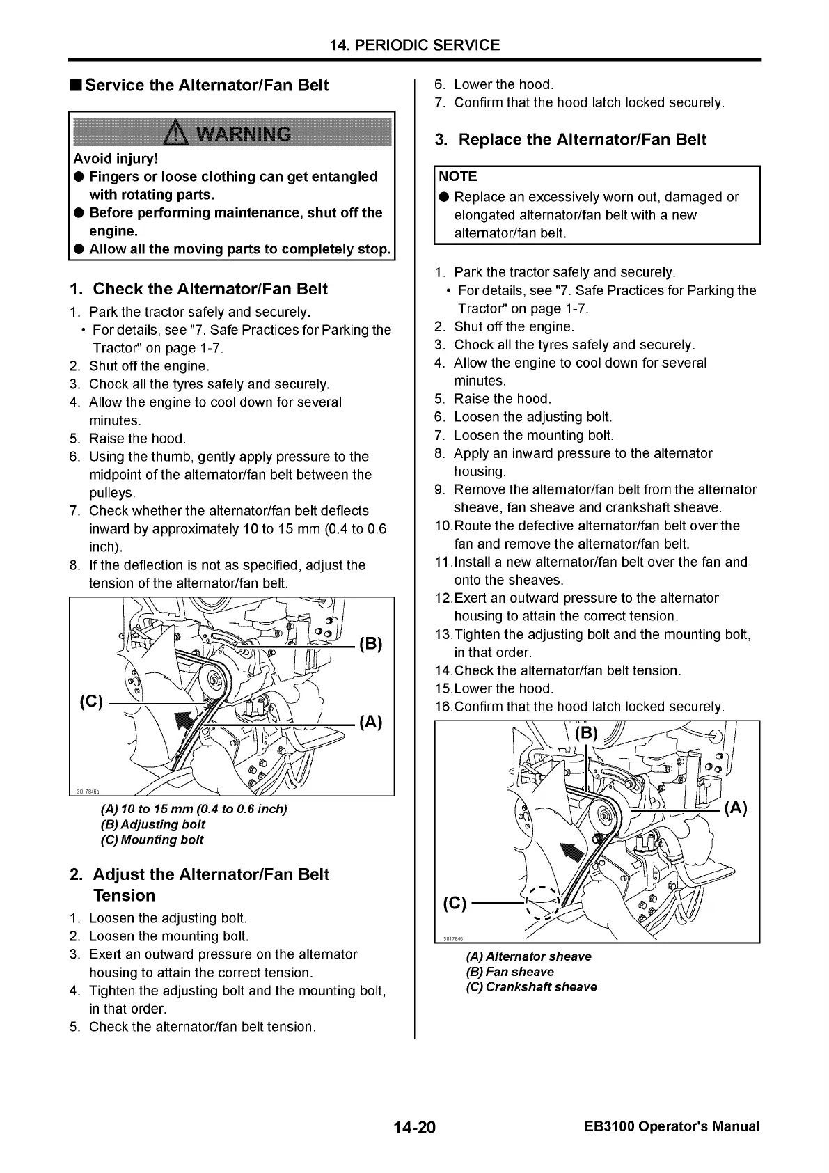 Yanmar EB3100 - Service the Alternator;Fan Belt