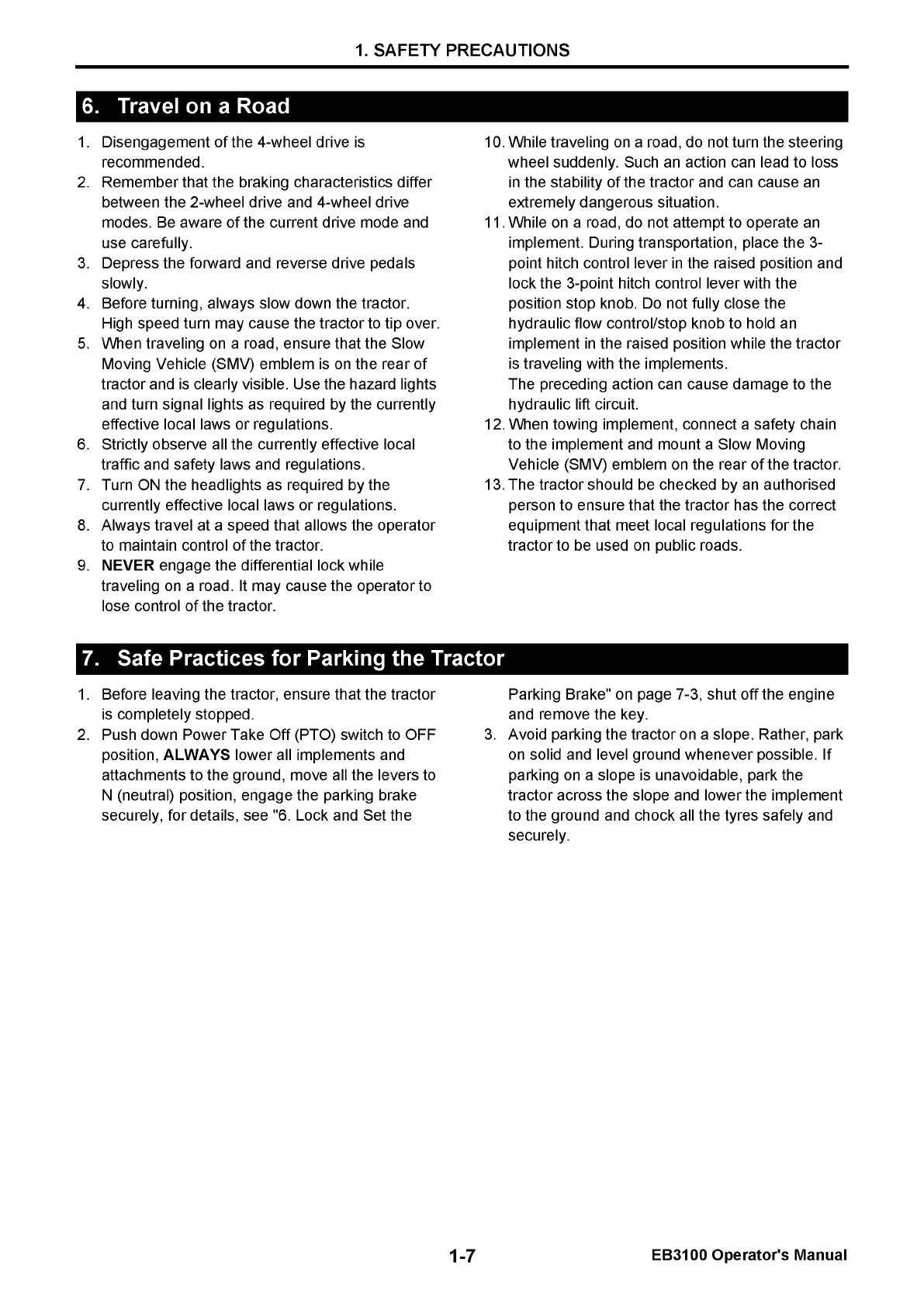 Yanmar EB3100 - Travel on a Road