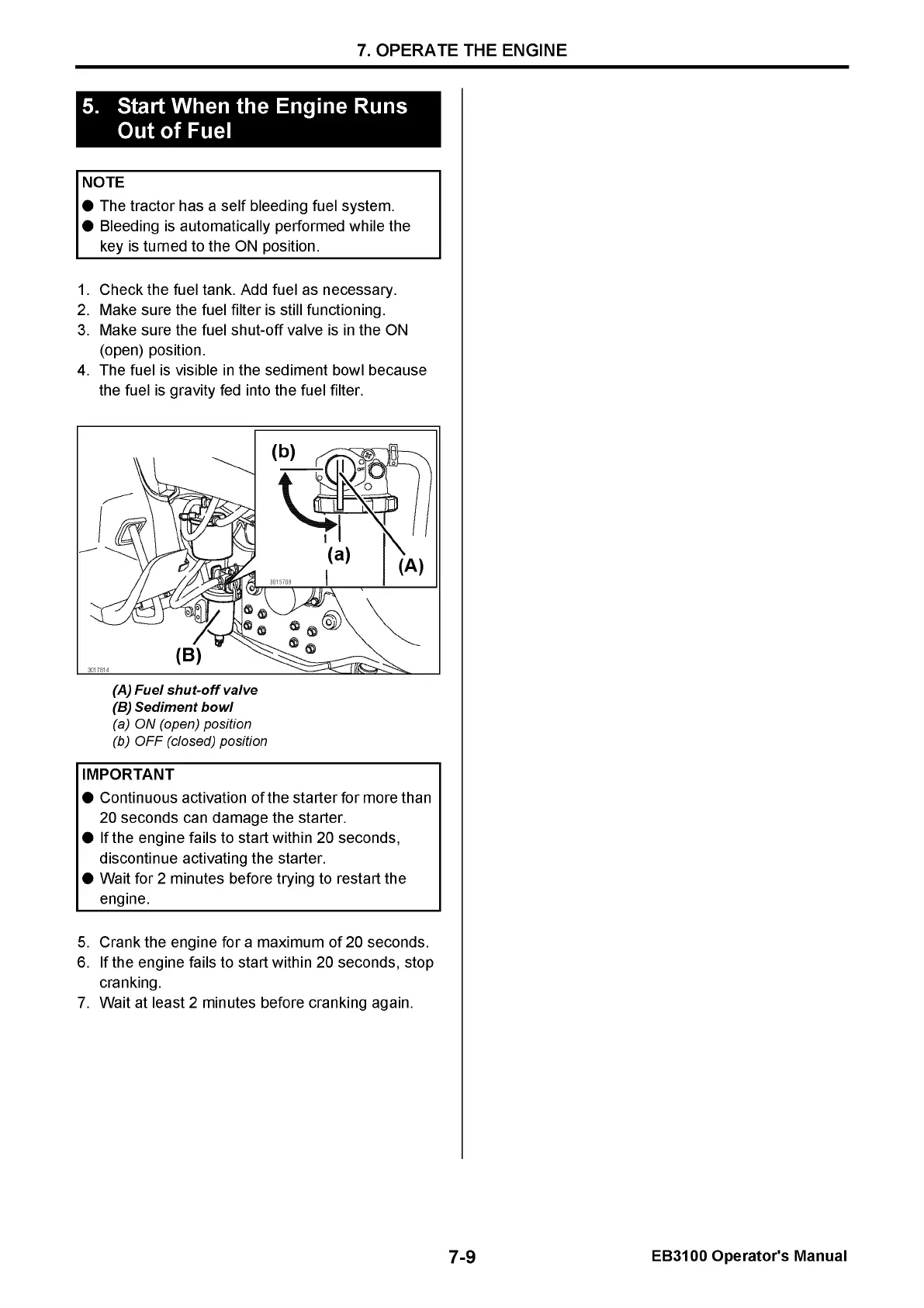 Yanmar EB3100 - Start When the Engine Runs Out of Fuel