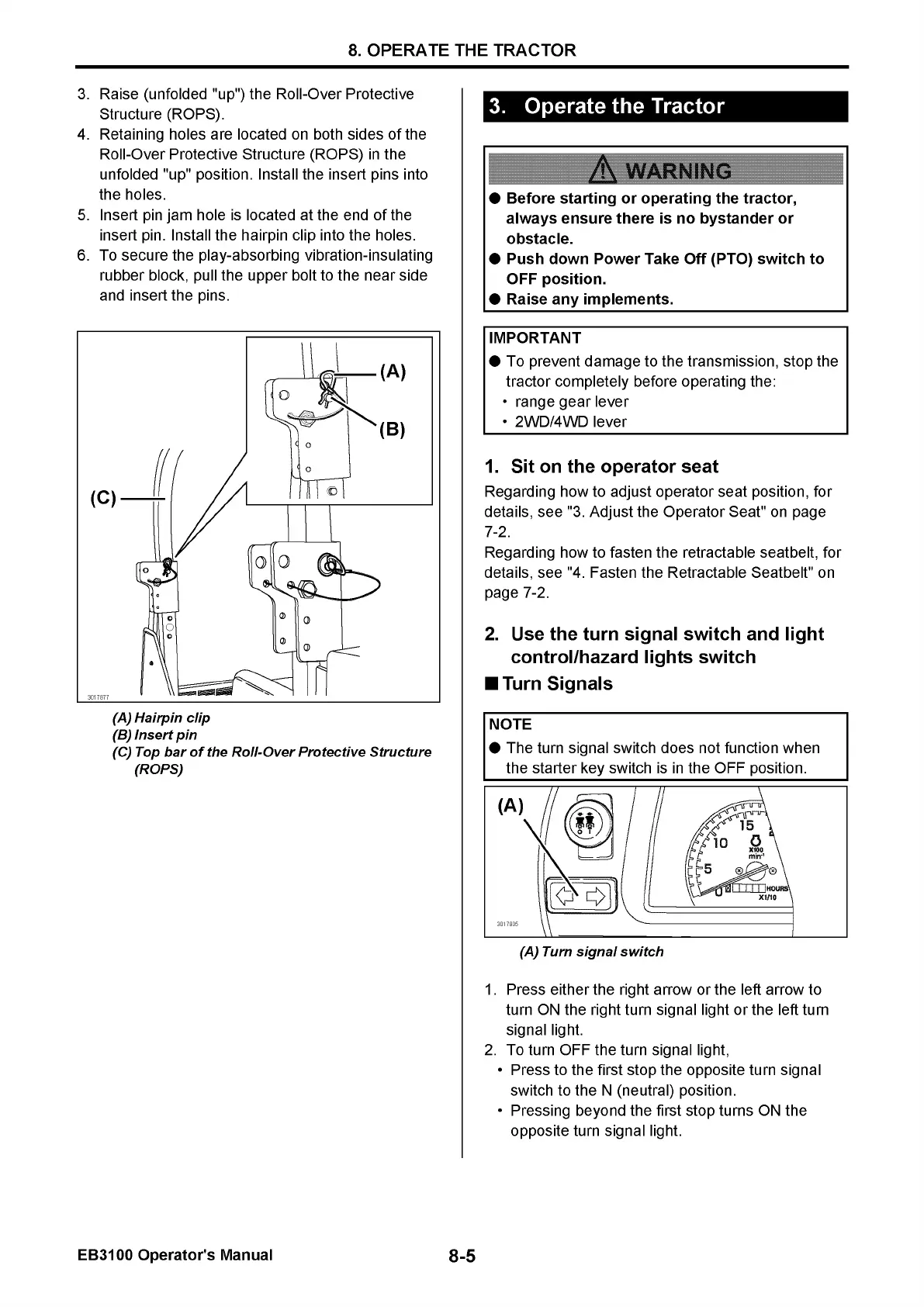 Yanmar EB3100 - Operate the Tractor; Turn Signals