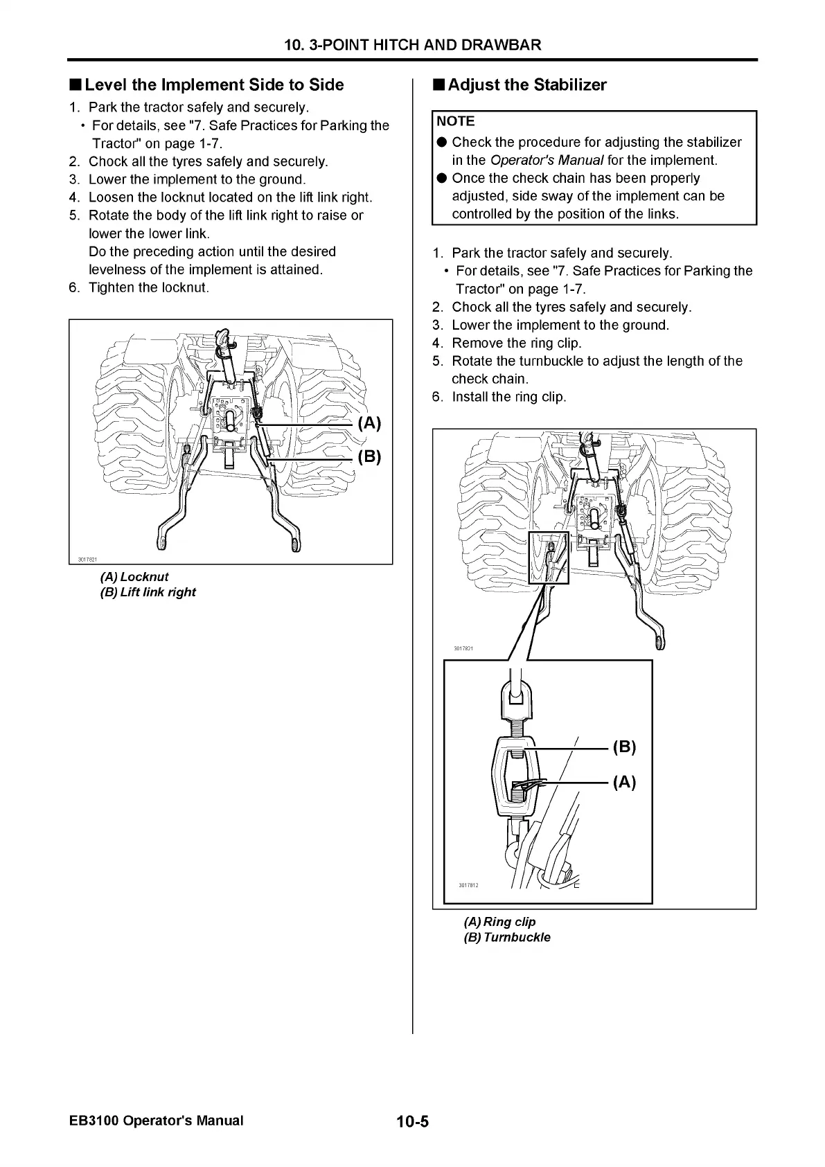 Yanmar EB3100 - Level the Implement Side to Side; Adjust the Stabilizer