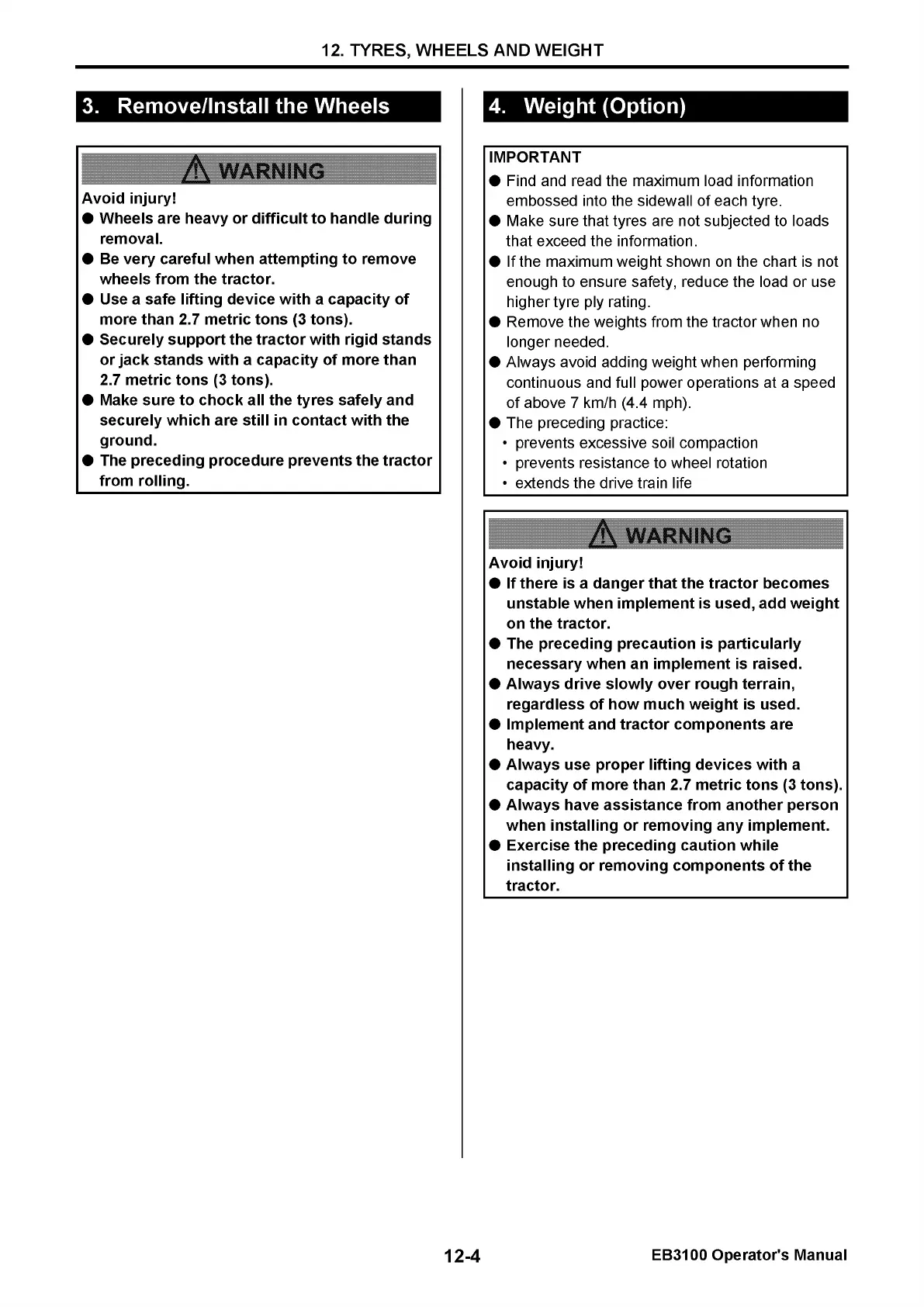 Yanmar EB3100 - Remove;Install the Wheels; Weight (Option)