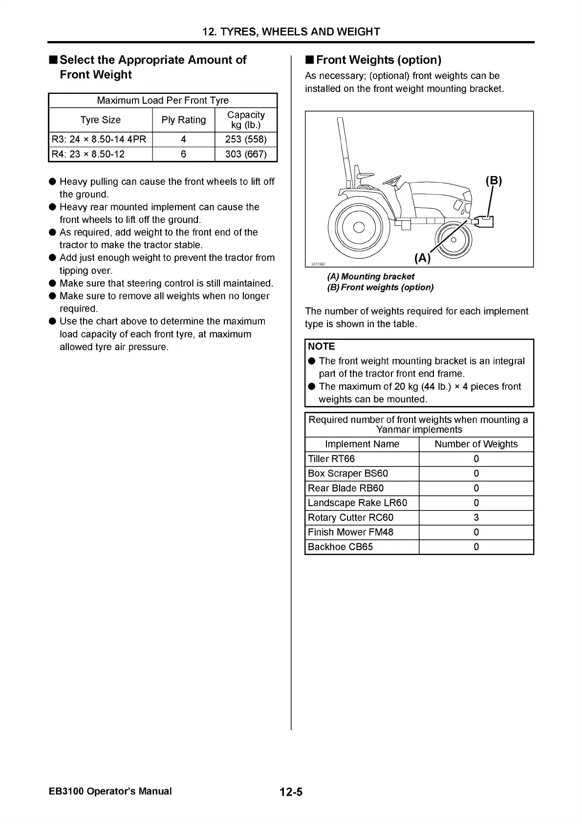 Yanmar EB3100 - Select the Appropriate Amount of Front Weight; Front Weights (option)