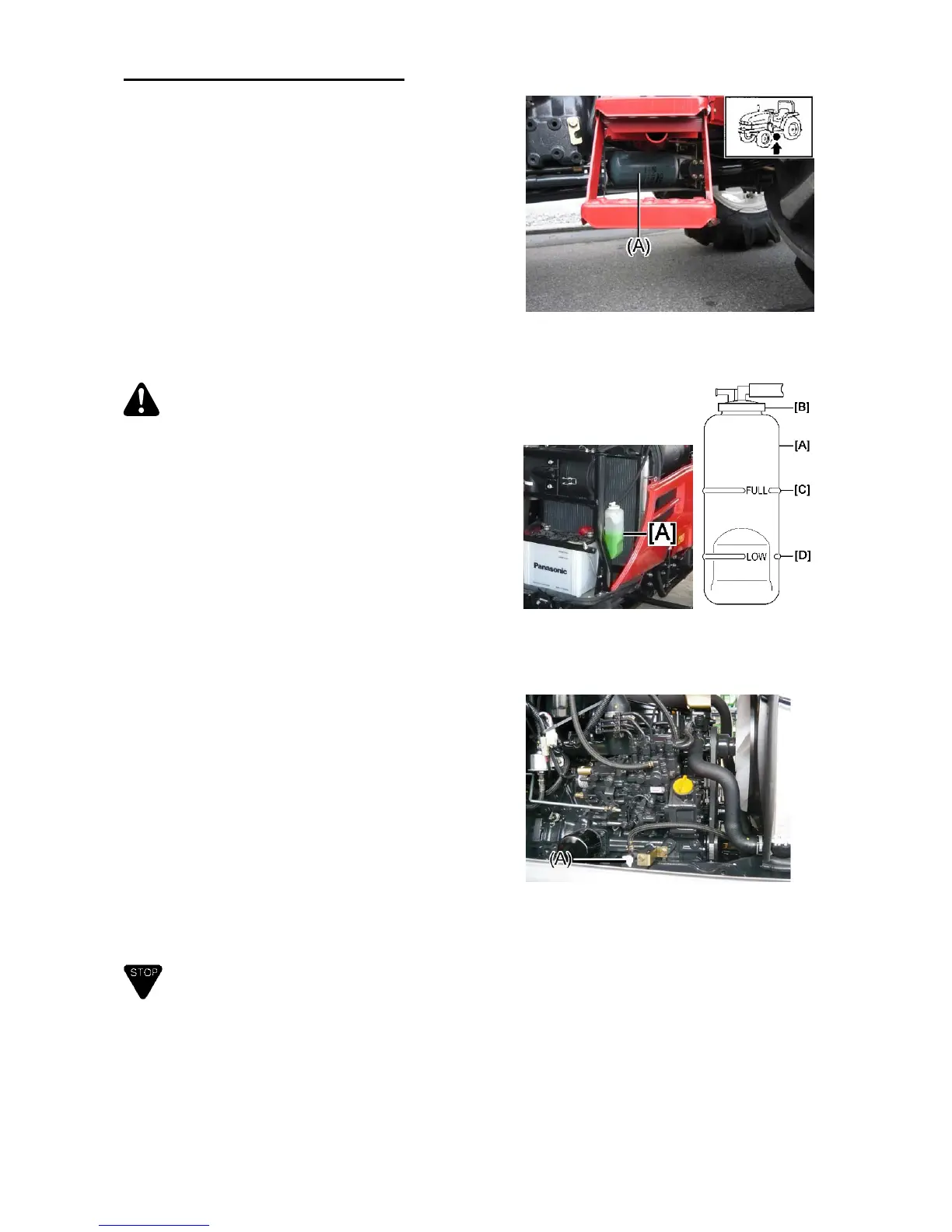 Open the bonnet and check water level in the sub-tank
