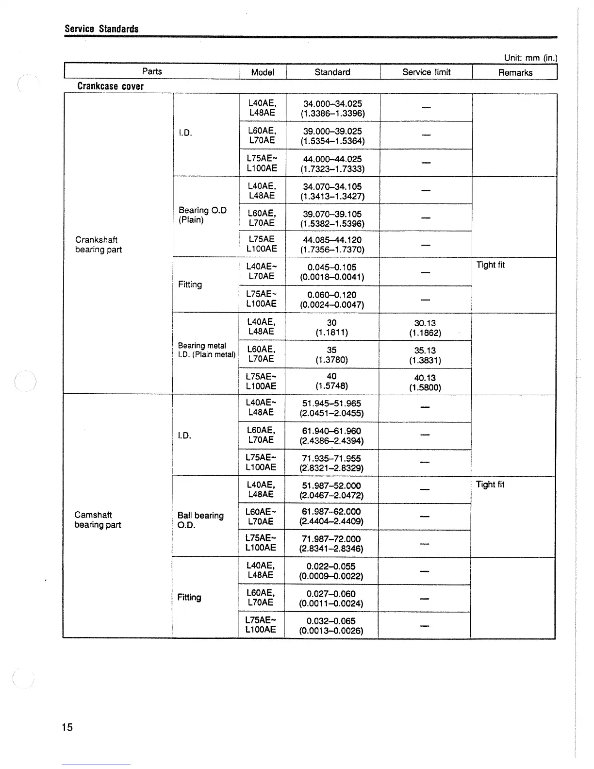 Yanmar L100AE - Crankcase Cover Service Standards
