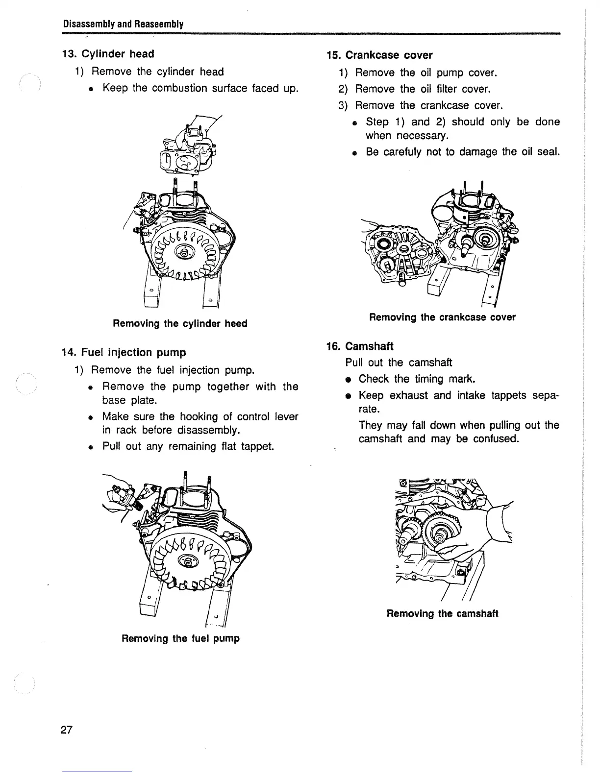 Yanmar L100AE - Removing the Cylinder Head; Removing the Fuel Pump; Removing the Crankcase Cover; Removing the Camshaft