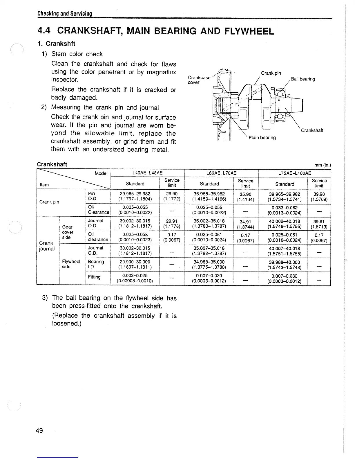 Yanmar L100AE - 4.4 Crankshaft, Main Bearing and Flywheel; Crankshaft, Bearing, and Flywheel Inspection